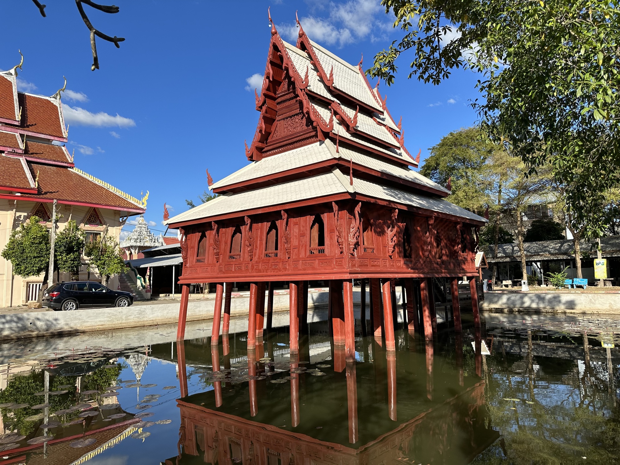 On one of our walks we went to an old temple. I wanted to see the ancient wooden structure on wood columns in the middle of a pond. It has been tradition to keep all the sacred texts written on palm leaves in buildings over water; libraries. It was to make sure no insects could get into the palm leaf books and eat them. Nothing can cross the water to climb the columns apparently.