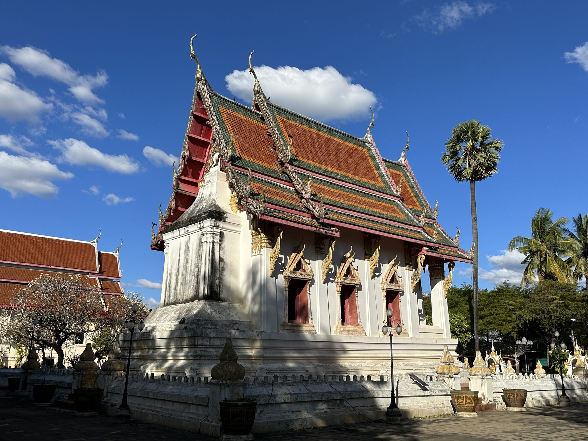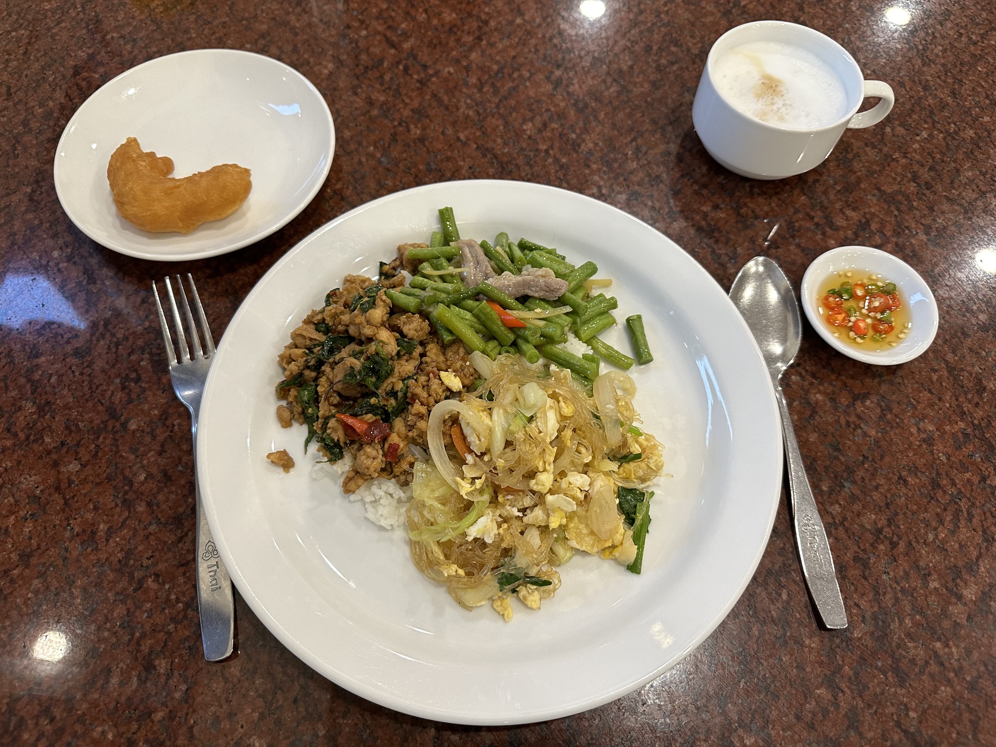 You know, luxury is great sometimes. I've mentioned before, that the Nartsiri Residence and Hotel has, included in the room price, the most wonderful buffet breakfast we have ever experienced. Every morning we had a huge selection of classic, delicious Thai dishes along with all sorts of other foods and drink. They even had three kinds of ice cream that you could scoop yourself! I opened up my wooden leg and went crazy filling it. It was so much fun. We have been up by 5AM and on the road by 6 every day to try to beat some of the heat, so we were still on that schedule. The wait for the buffet to begin at 6:30 was interminable but finally very much worth it. I actually don't know how they make any money because the effort and expense to put on such a buffet every morning would be tremendous. It was a treat for us.