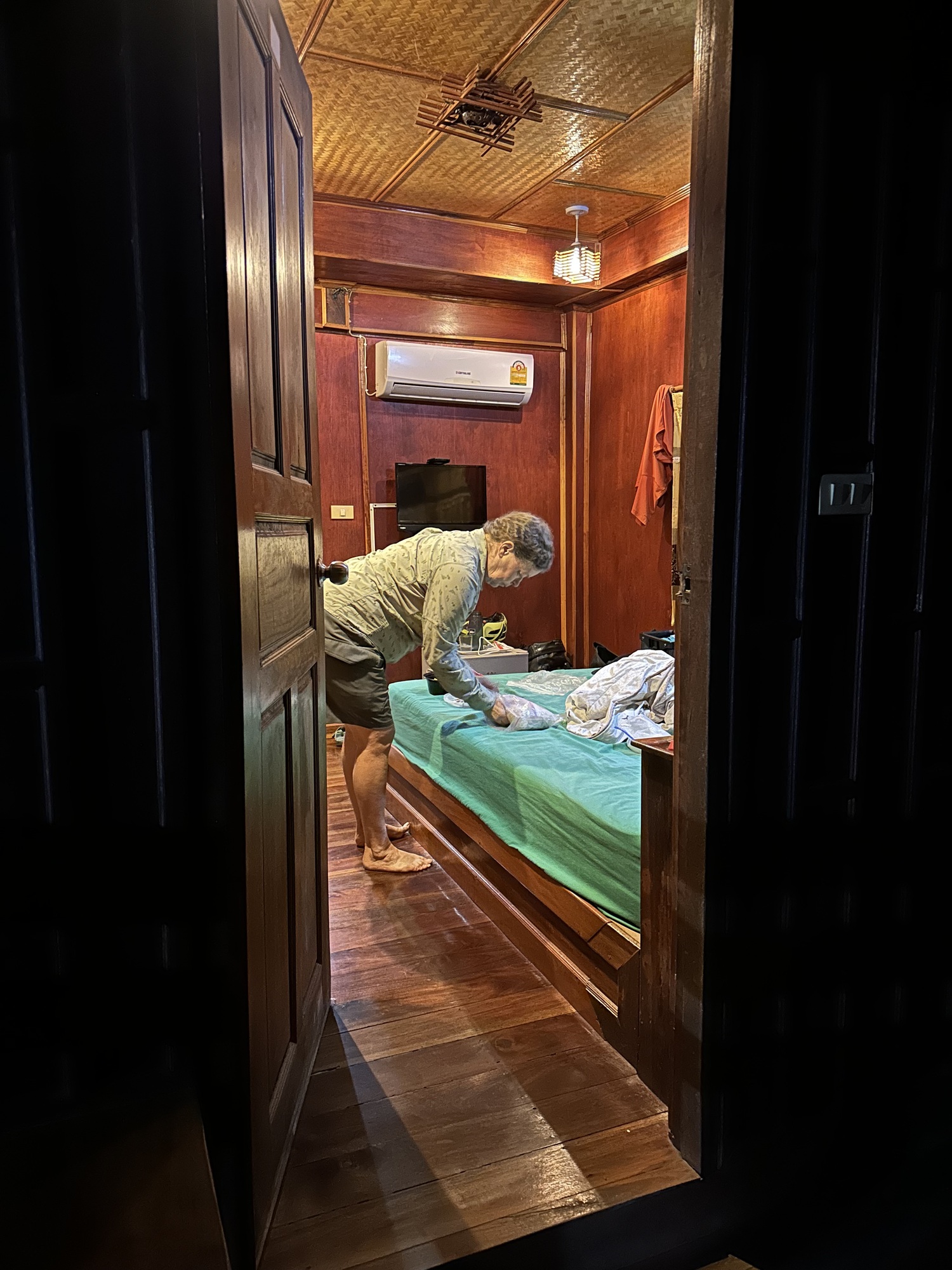 We settled into our bungalow, one of twenty I counted but no one else was there. Eventually three things needed to be addressed. First, we only got one bottle of water with our room. Guest houses always provide two bottles of water per day. Second, he didn't give us the key and third, we needed the wifi password.