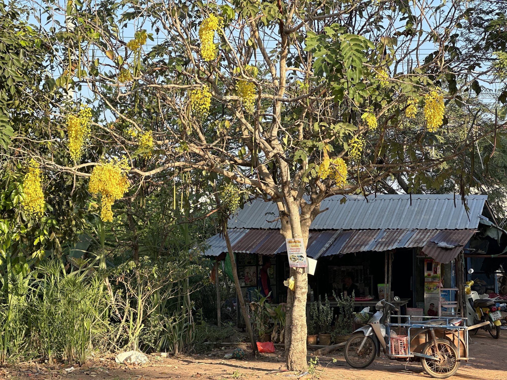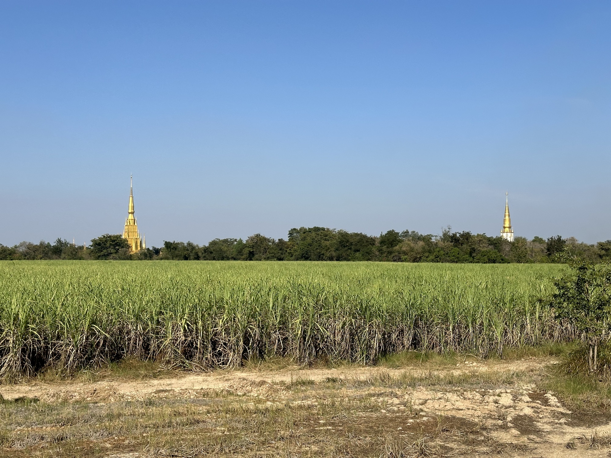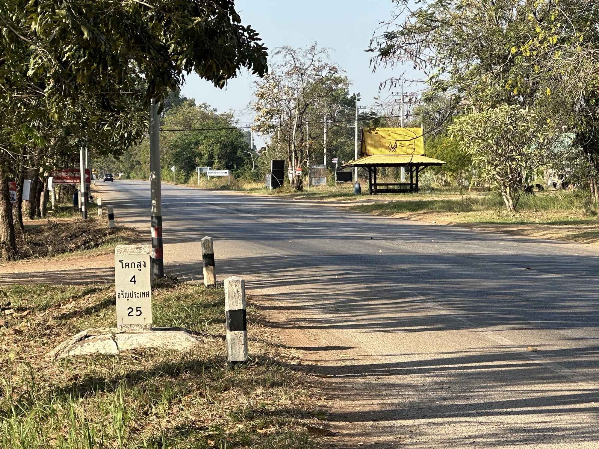 There were extra chores in the morning to pack up our bedding and eat a muesli and papaya breakfast so it was a bit of a late start but we knew it was a straight shot on a smooth road to Aranyaprathet. Back in Sisaket we had made the decision to catch the train there after a few days of noodling around Isaan, and today was to be our last Isaan riding day, and Isaan gave us some gifts.