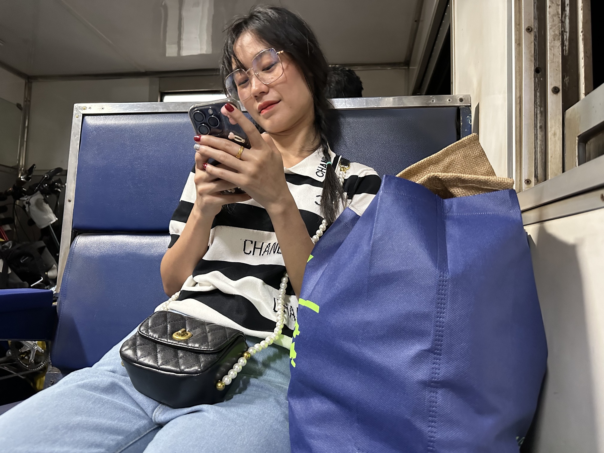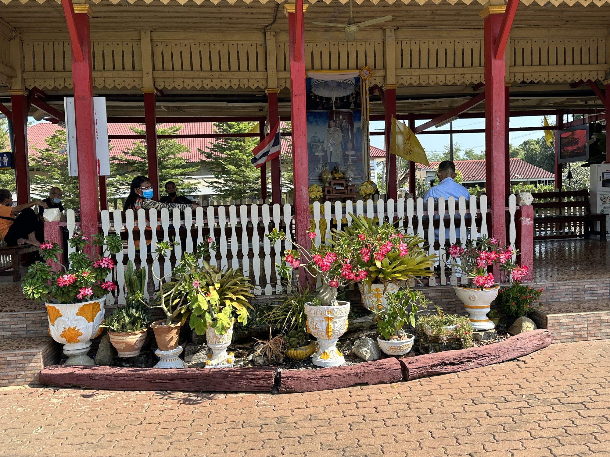 On the way back to the station we saw a cart selling coffee bolan (traditional Thai coffee, brewed in a cloth bag) and got two of those to go, iced. And a good thing too because while we were shaded in the outdoor seating area of the station it just got hotter and hotter, even with the breeze. I lay down on a bench and took a catnap. We crunched our coffee ice and waited and waited, as the benches started to fill up.