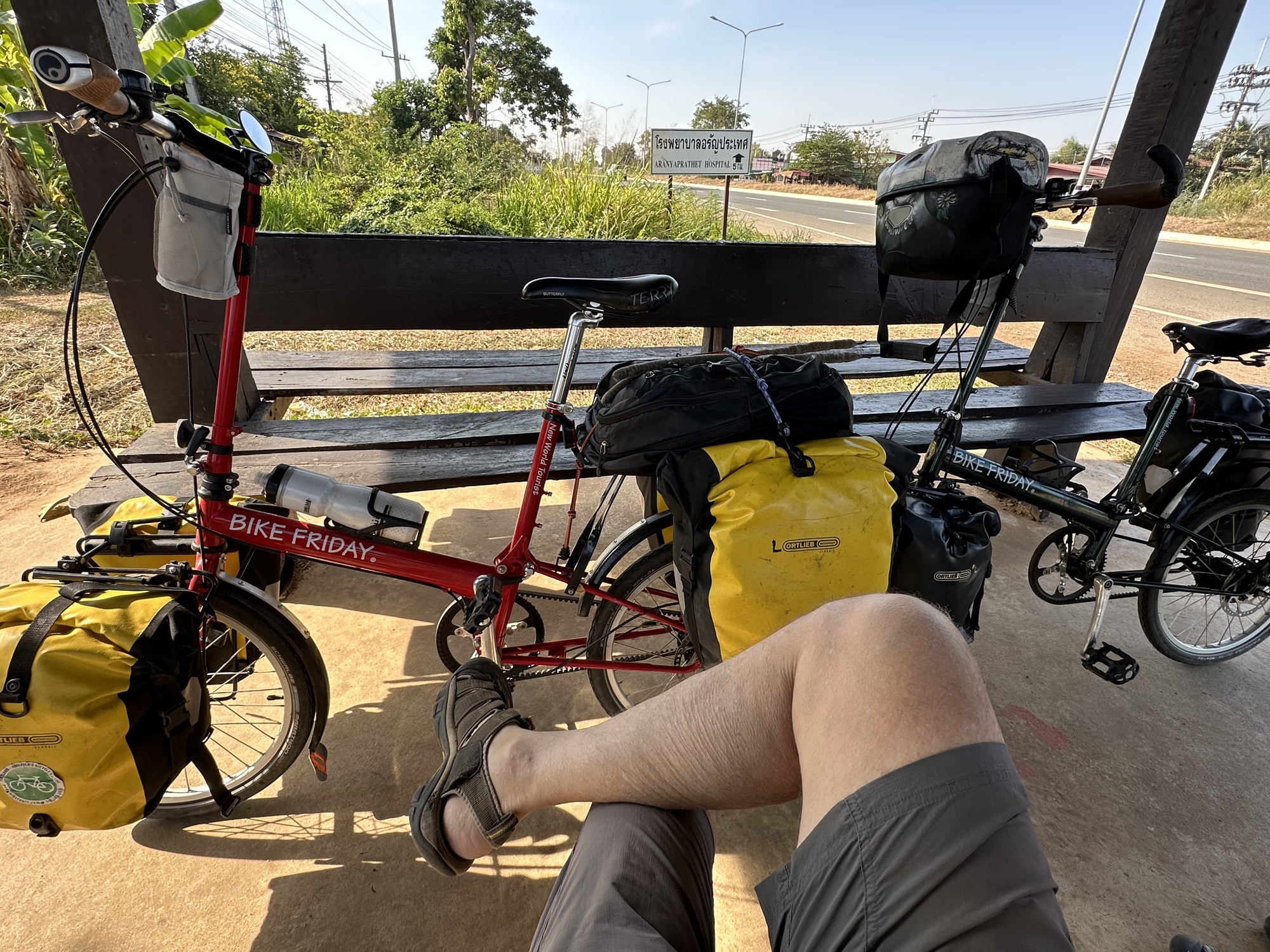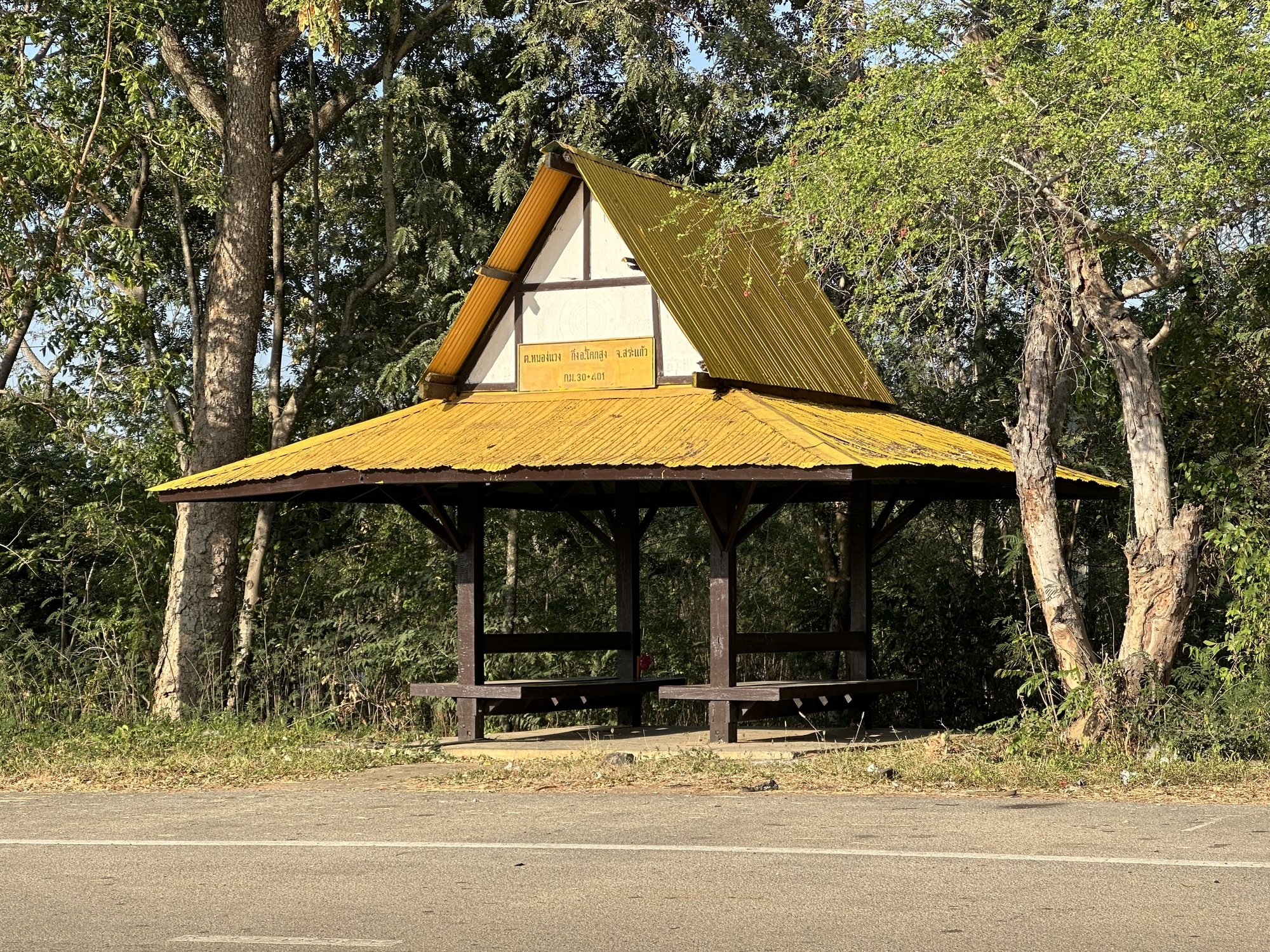 We love these shelters to rest in and have a snack. We ride our bikes right inside them and are eating or drinking within seconds. These shelters are everywhere in Thailand. On some roads they are every mile or so.
