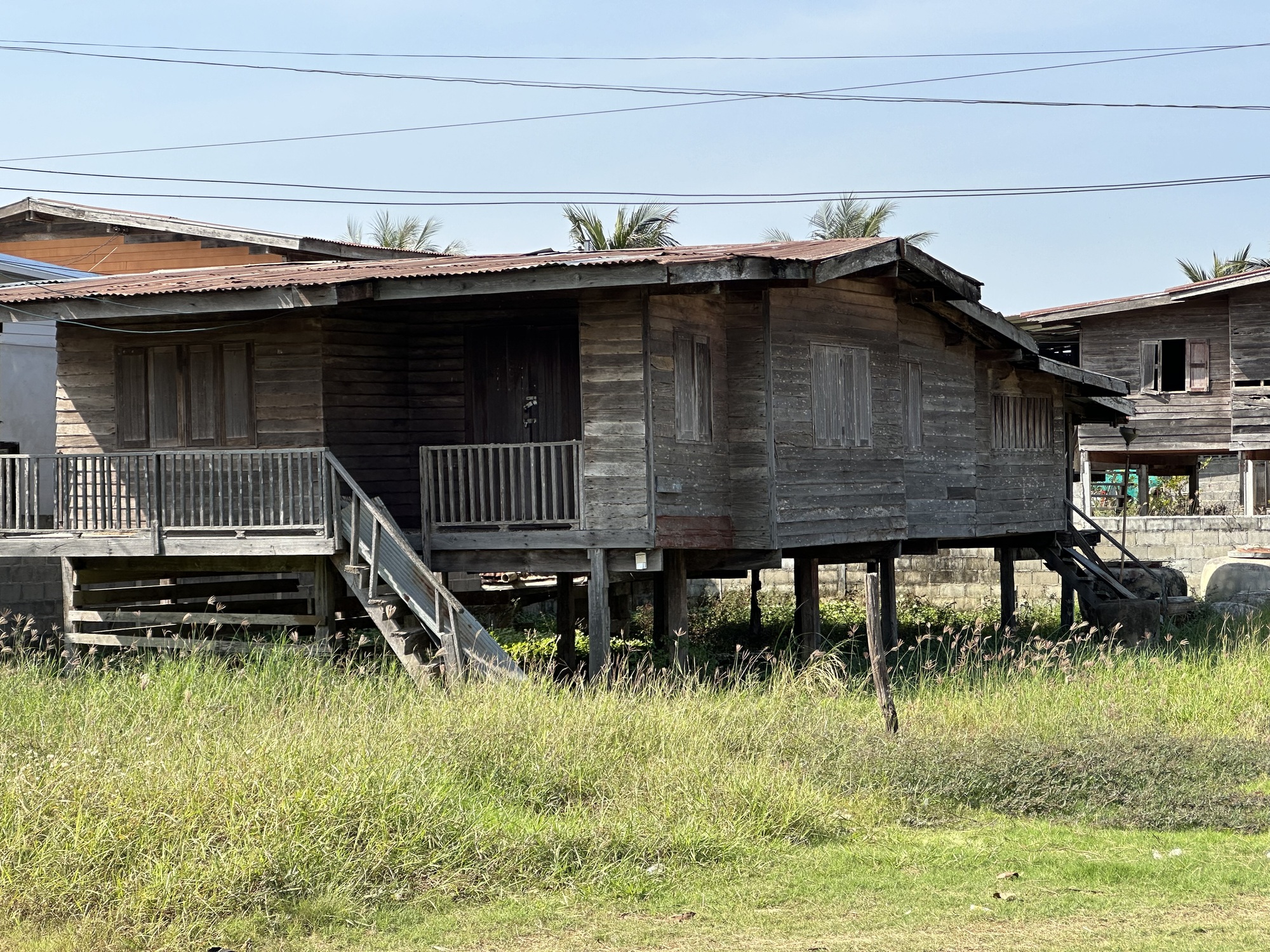 Then they started building houses not from wood but from cement/stucco in the 1960's. Still on stilts but the bottom level, prone to floods, probably doesn't house valuables.