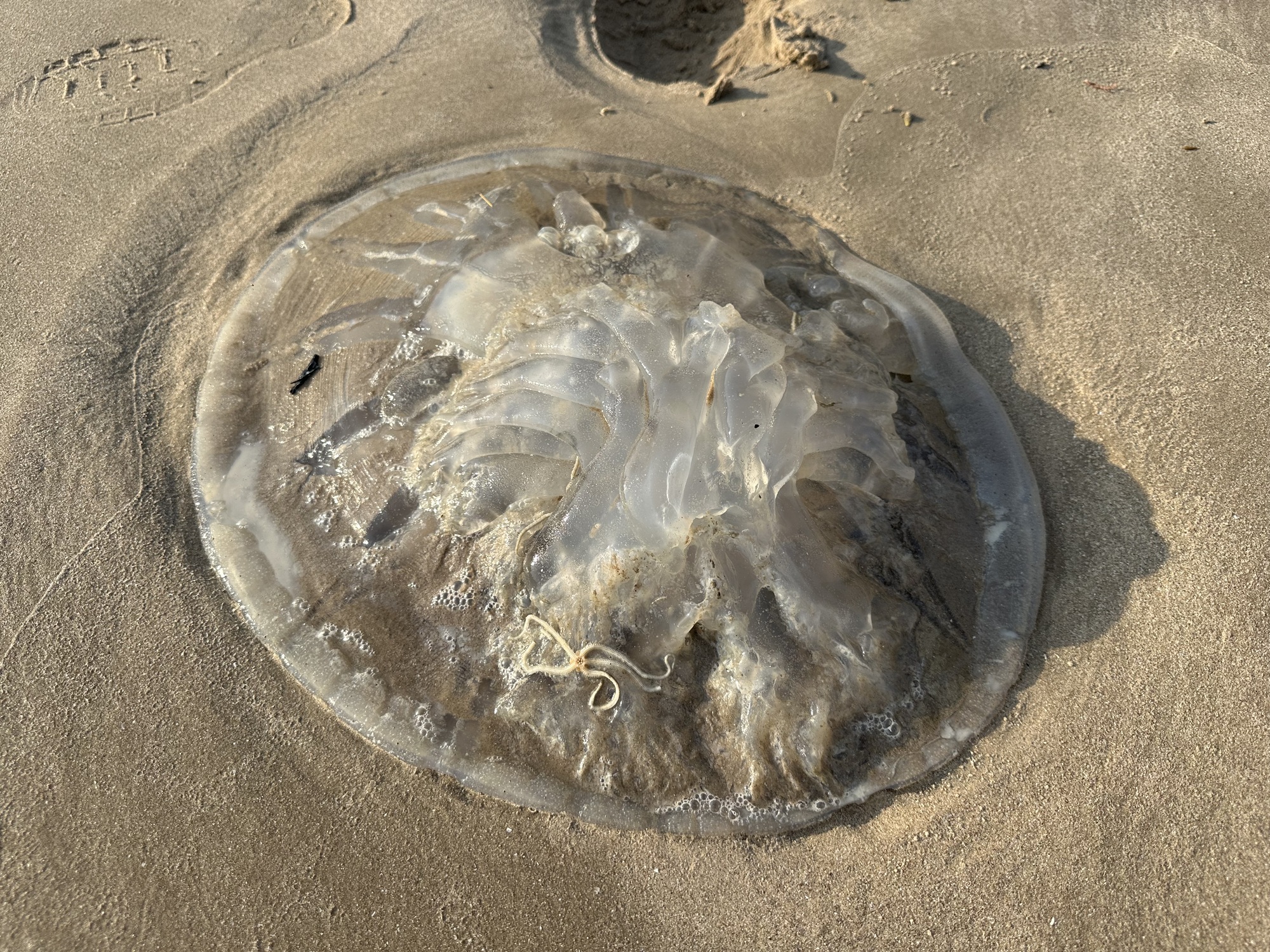 Then, I told him I wanted to go see what the beach was like. He lifted his beer can to me and told me to go north because the beach was nicer in that direction. "You can walk 2 kilometers that way." I wanted to walk barefoot so I removed my Keens and left them there on the step next to him.