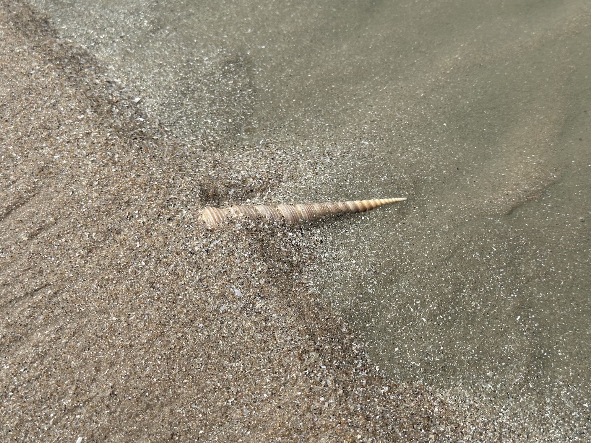 I found lots of the long spiral shells on my walk and most were totally intact and beautiful. Of course I picked some up to bring back for show and tell with Andrea. When I got back to the dining area my shoes were gone! My first thought was that maybe the shoes had been in some sort of danger and some caring individual had picked them up and moved them to safety - either one of the caretakers, the Finnish man or Andrea. The first person I found was Andrea and I asked her, "Did you take my shoes?" The look she gave me suggested she didn't know what I was talking about, why my shoes were missing and why she might have taken them.