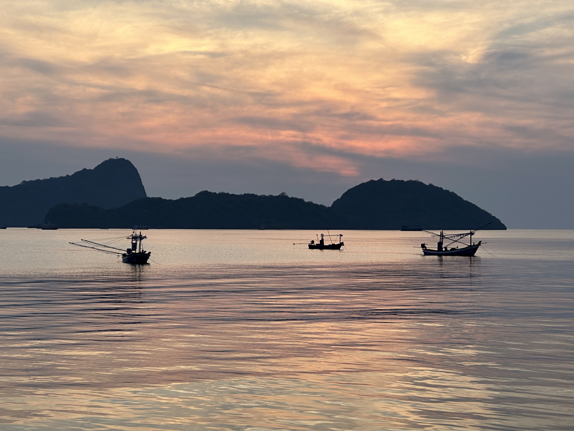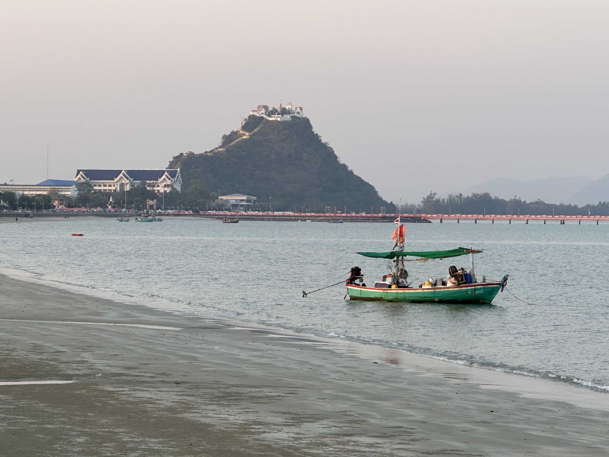 On the weather apps on our phones we have several places saved. Portland, Bangkok, Chiang Mai, other places where we know people, and at the end of the list: Prachuap Khiri Khan. This whole trip, we’ve been checking the weather in Prachuap Khiri Khan and reporting it to each other.