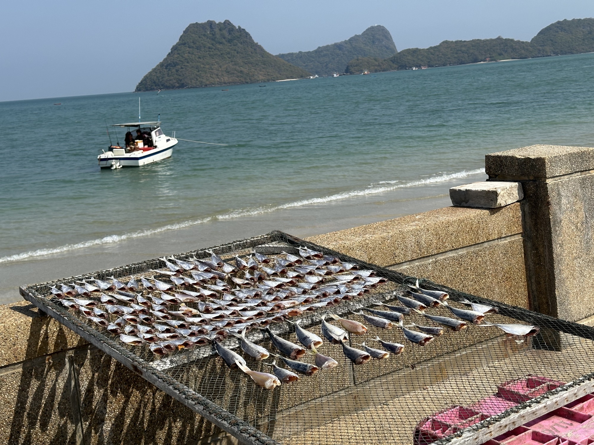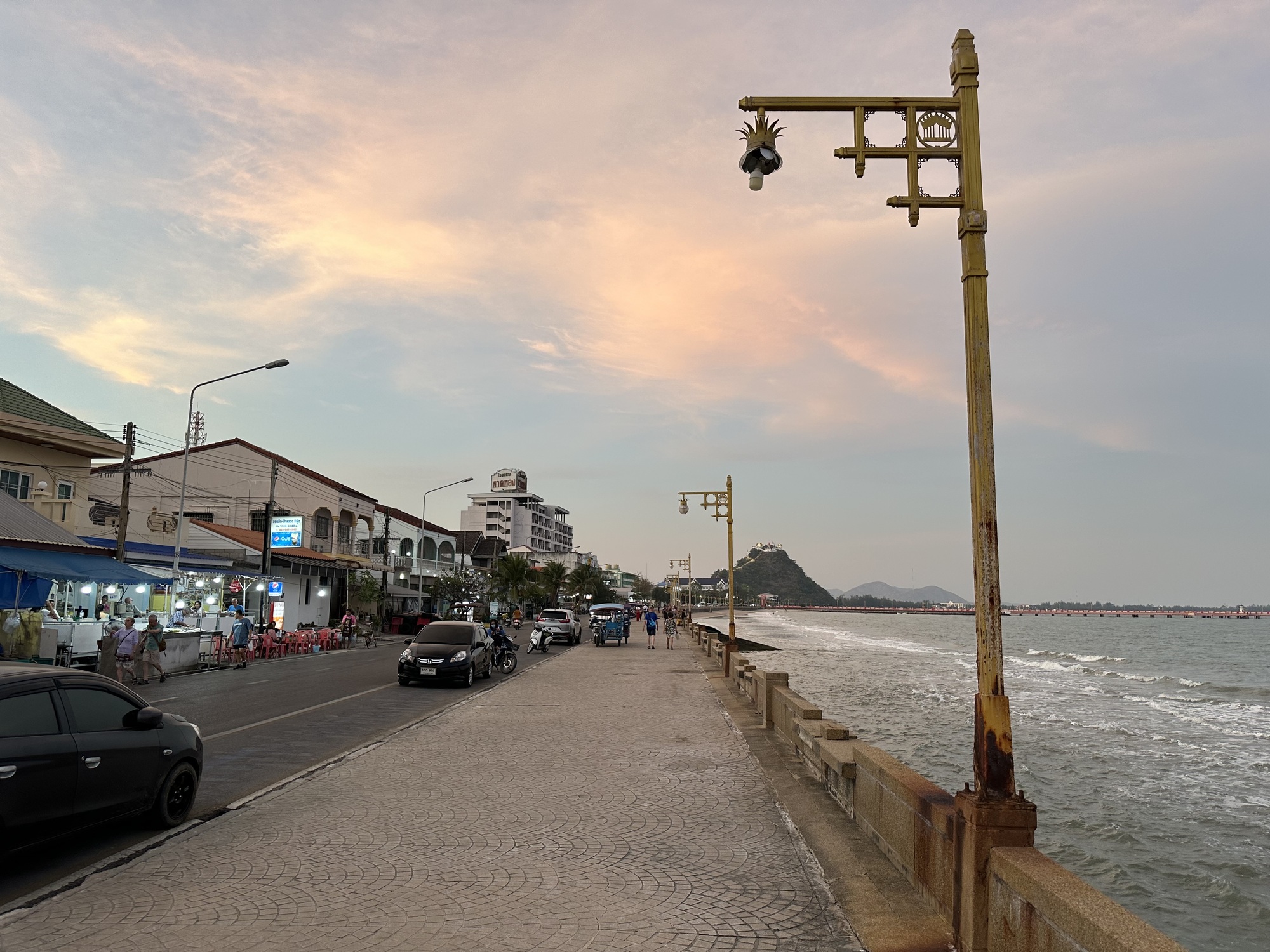 Prachuap has done a good job at preserving its neighborhoods, at least so far. There aren’t huge high rises at the edge of town despite the gorgeous scenic curving beaches. Locals still fish and keep shop and run two markets a day, the morning market and the evening market. The nearby military base, which starts just a few hundred yards from where I sit typing this, contributes to the local economy, you see a lot of young guys with flattop haircuts and military garb in the coffee shops. The economy gets some cash from the winter crop of winter tourists but the locals are not burned out on misbehaving foreigners, they are congenial and polite.