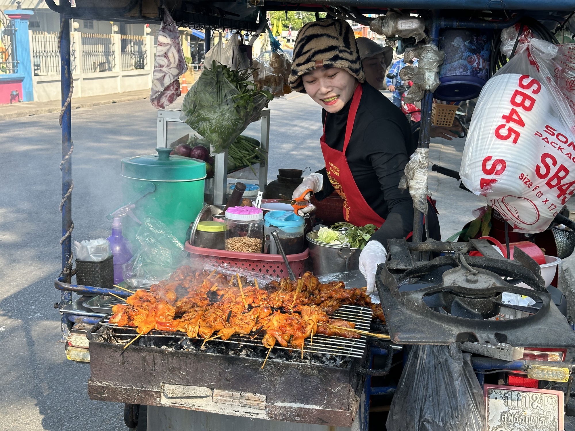 The first day we were here we parked our bikes and haven’t unparked them except to do a 20-mile round trip visa run to an immigration office near the border with Myanmar, which Bruce has already described. Mostly we just walk around in the morning and evening, the daytimes have been pretty hot except maybe the first few days when there was an east wind churning up the ocean and blowing right onshore, cooling things to a reasonable temperature. That’s over now. It’s just hot.