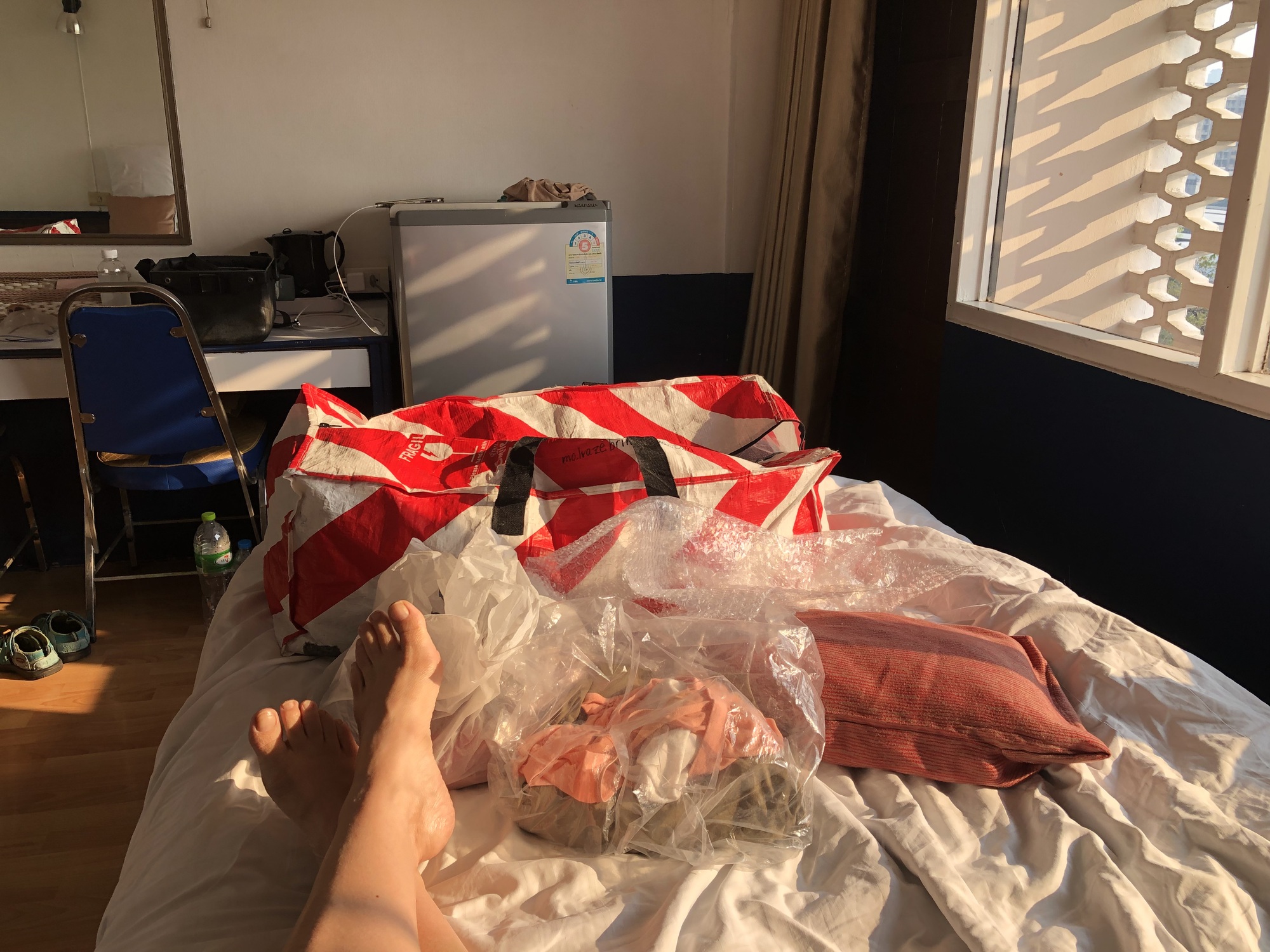 Usually the night before a big transition of some kind my mildly disordered sleep becomes pathologically disordered. Not this time, I slept remarkably well on my plastic-y mattress with the rootin’-tootin’ traffic 6 floors below our funky balcony. I think I know why. I really wanted to go home, and sleeping would make that happen sooner.