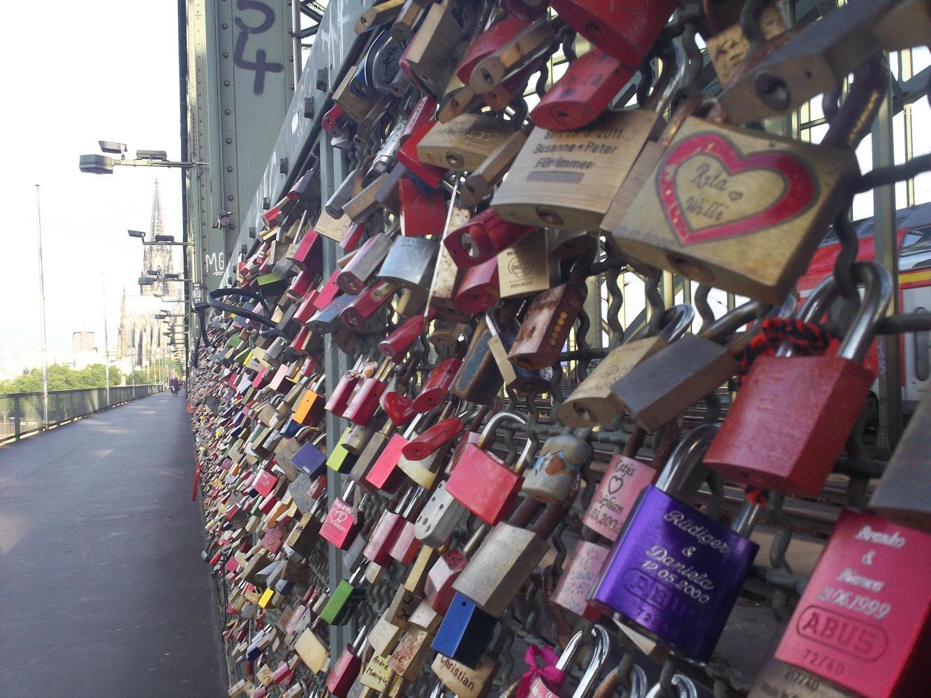 I took a spin around Cologne. The next scene in the movie would have me/Gosling all pensive and moody and handsome, looking at the thousands of padlocks which have been locked to the grill on one side of the railway bridge across the Rhine. On each lock is inscribed, or written, or tip-exed, a pair of names and a heart, a symbol of enduring love.