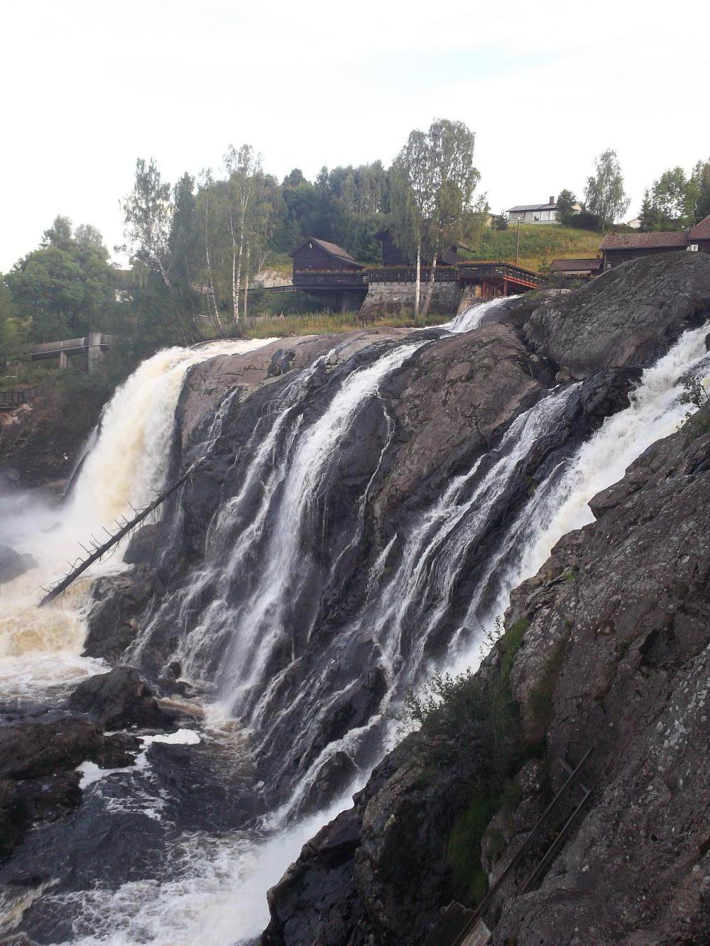 Late in the day I started following another road which would lead me up a high pass and the waterfalls started. The road was naturally following a river and a few times there were really nice waterfalls. I stared at the beauty and power of the falling water and the vast forests around and thought of how raw and natural and untamed all this was. Well, the waterfalls had been used to power mills in the past, but those buildings were mostly old and in ruins now, while the water just keeps on running, as it has for millennia, never stopping for a second.