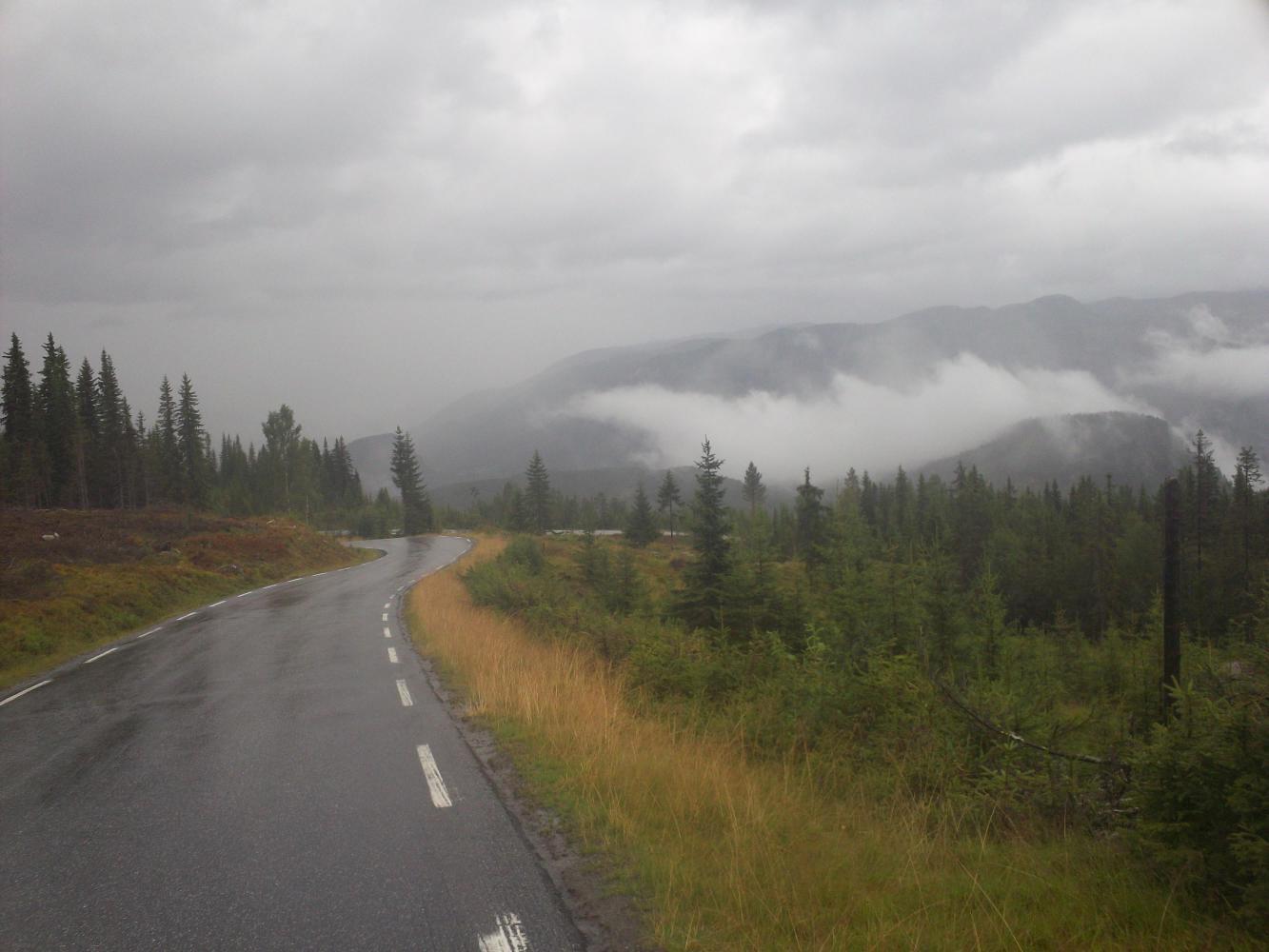 Up until this incident I had only positive things to say about this wonderful country. The next day, however, was not a good one. To put it bluntly, it rained very hard, all friggin day. And because I had such a stupid schedule, I couldn't not cycle, so I rode through it and just ignored the fact that it was so wet that I could squeeze my gloves into a fist every few minutes and a stream of water would flow out like I was ringing out a wet towel. It was probably the wettest day I have ever cycled through. And to make matters worse, it felt like I was cycling uphill the whole day as well. Over the first pass and only a short downhill and then another long slow climb, waiting for another downhill which never arrived. I was not in love with Norway on this day.