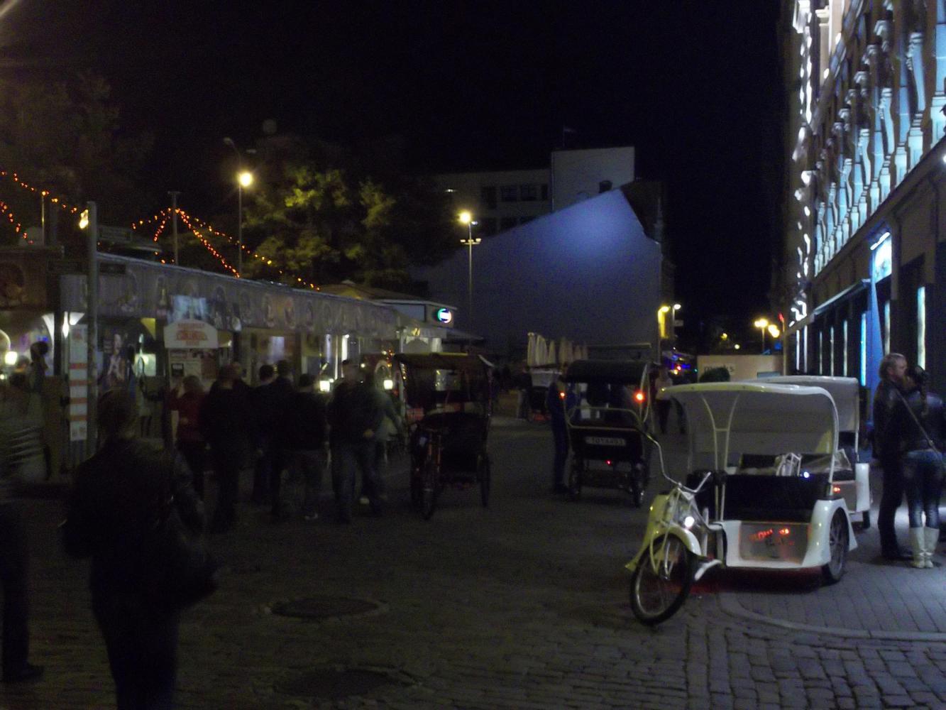 It was a Saturday night and the town was alive with people. I considered checking into a hostel and going out to party but I gave up on that idea when I remembered that I didn't have any clean clothes. Instead I just sat and watched from benches as everyone else had a good time. There were a lot of pedicabs. Some of them were sleek modern white limo-esque things with cool lighting and music playing and I decided to talk to one of the guys sitting on one of these pedicabs. He wasn't very friendly at all and didn't have much interest in talking with me (something that is known in the trade as 'pulling a Nikolay.') He did tell me that they had to pay 70% of what they earned to their boss. This is different from most pedicab companies where you pay a fixed amount to rent the thing and whatever you earn over that is yours and I wondered how the boss could know how much everyone made but apparantly there was a camera in the cab and he watched everyone. The guy told me if I didn't need a lift he wanted to work and turned away from me and so I tried speaking to another pedicabber but he was as reserved and unfriendly as the first. He told me that they had to pay 50% of what they earned to their boss and I realised that the first one had probably been exagerrating so that I felt sorry for him and gave him money (something known in the trade as 'pulling a Nikolay.')