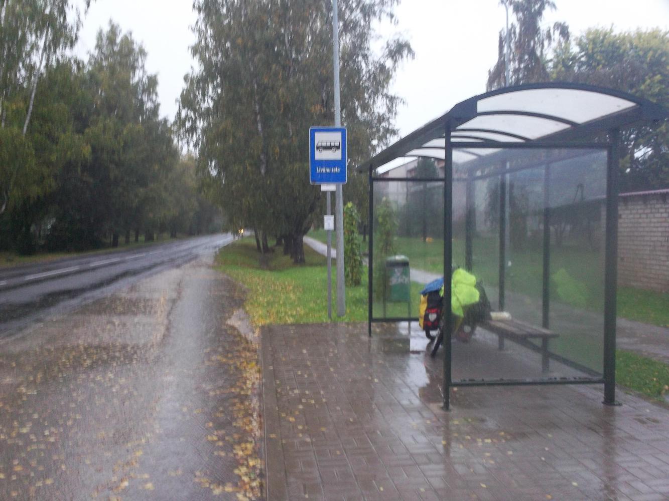 The next day there was blue sky when I woke up and I quickly hit the road to try and make the most of it, but it was raining again before I was even out of the city. The rain only got heavier as I made my way south towards Lithuania. My stay in Latvia was going to be a brief one, but who wants to spend a long time in a country where it always rains? On this particular day it was coming down in torrents and I was making slow progress as I kept stopping to hide in bus shelters. I would sit for a while, dripping, getting cold, then decide I was going to be a man and carry on cycling. Then when the next bus shelter came into view I would decide that I had been quite enough of a man and would just stop and be a wimp again for a few minutes. Half an hour later I would man up again and continue, and so it went on.