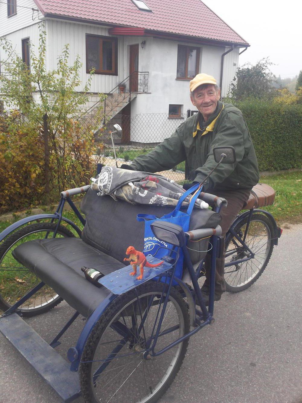Some of the smaller roads turned out to be quite difficult. Some of them turned into sand. Cycling in sand is quite difficult. But the scenery was rather splendid at times, and the quiet roads were often a delight. I had one rather brilliant meeting as I passed through one of the small villages along the way. It was with the world's most unlikely rickshaw driver. A quiet road through a little Polish village was about the least likely place to encounter one. Nevertheless, I could hardly consider my study of the world's rickshaw drivers to be complete without stopping to interview this man.