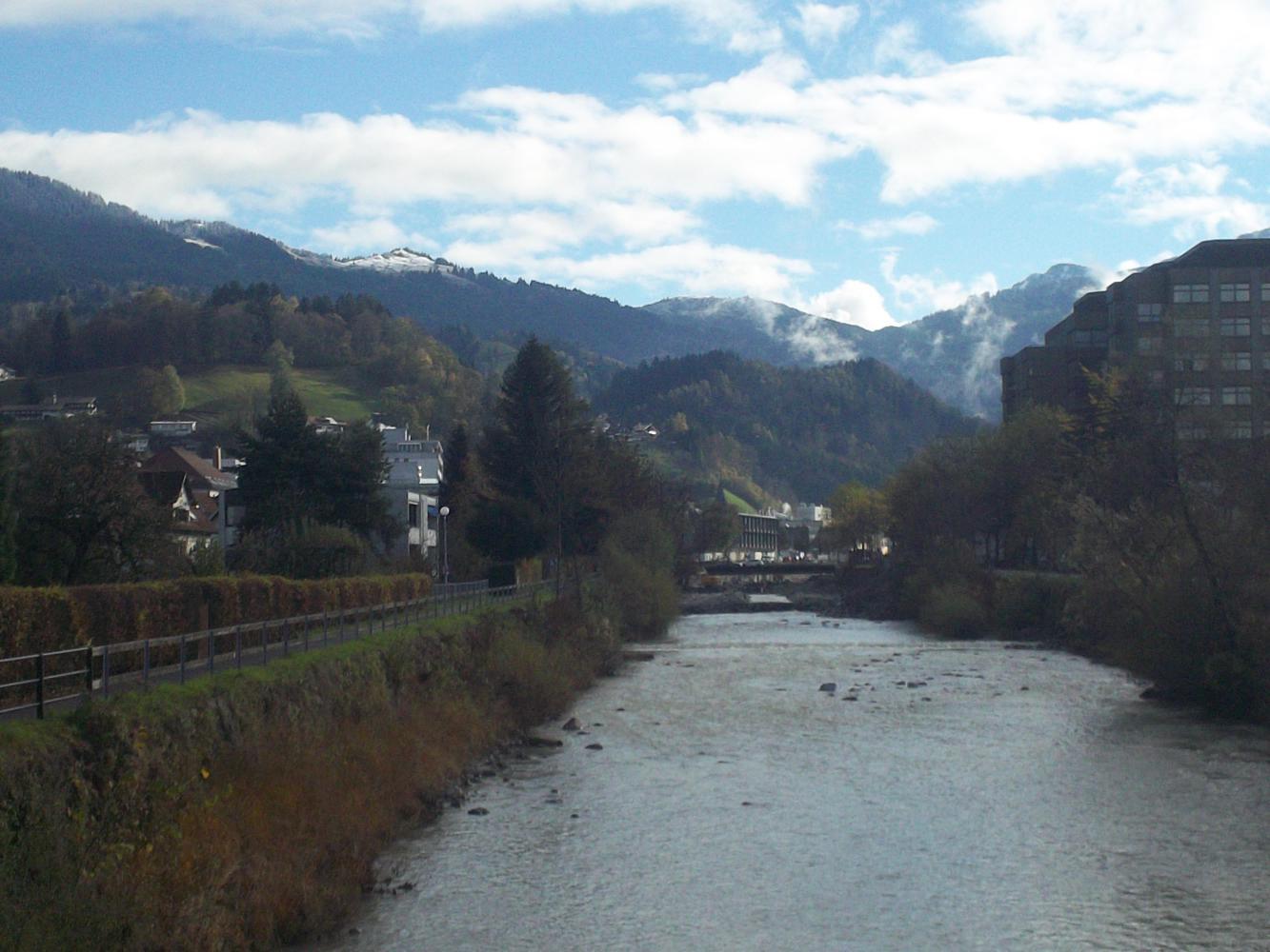 Then I was in the wide valley of the Rhine river again. That river looked the same as it always does; light blue-grey in colour and wide, but with man-made artificial banks that make it look more like a canal than a river. By now more snowy peaks were appearing ahead on either side of the river and the weather had become much better, with blue skies and sunshine. Austria had redeemed itself (although I was still to see a single ostrich), just as I prepared to leave and move on to the third country of the day...