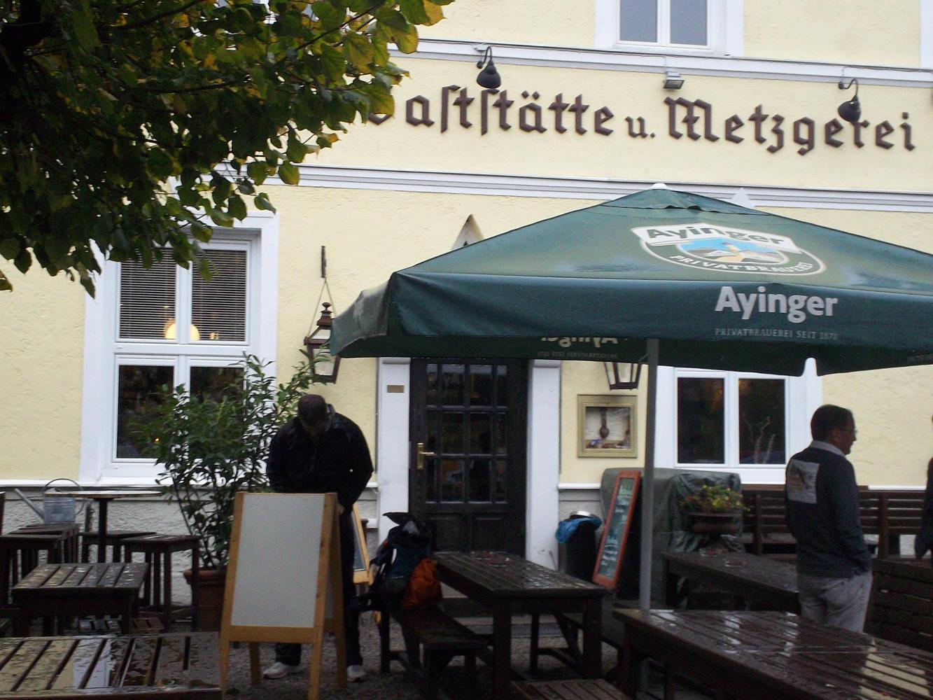 Anyway, whatever, it doesn't matter. We made it to Munich, and it started to rain. Dr Dave had an emergency raincoat. He looked funny in it. We had time so we stopped at a German beerhouse and he ordered two lunches for 17 euros each. I wouldn't have done that if I'd been by myself.
