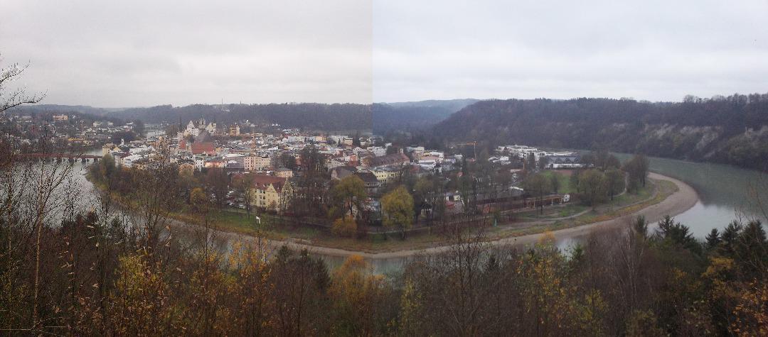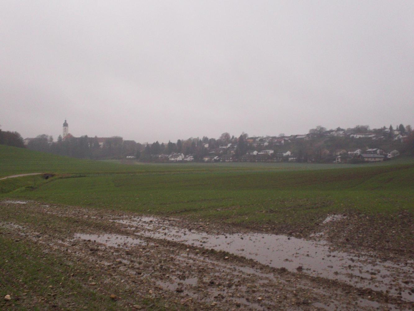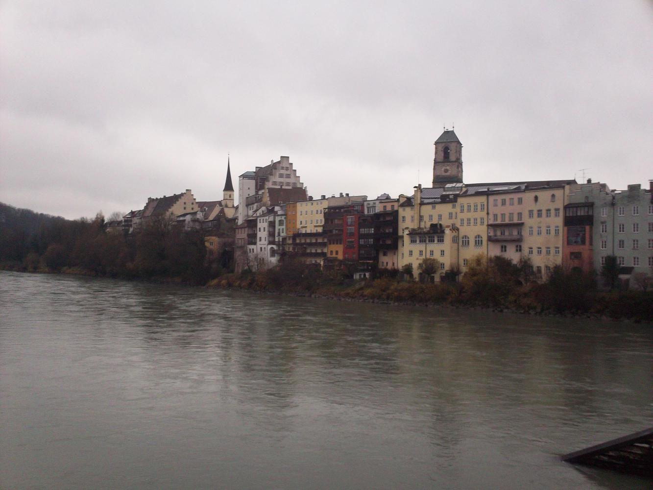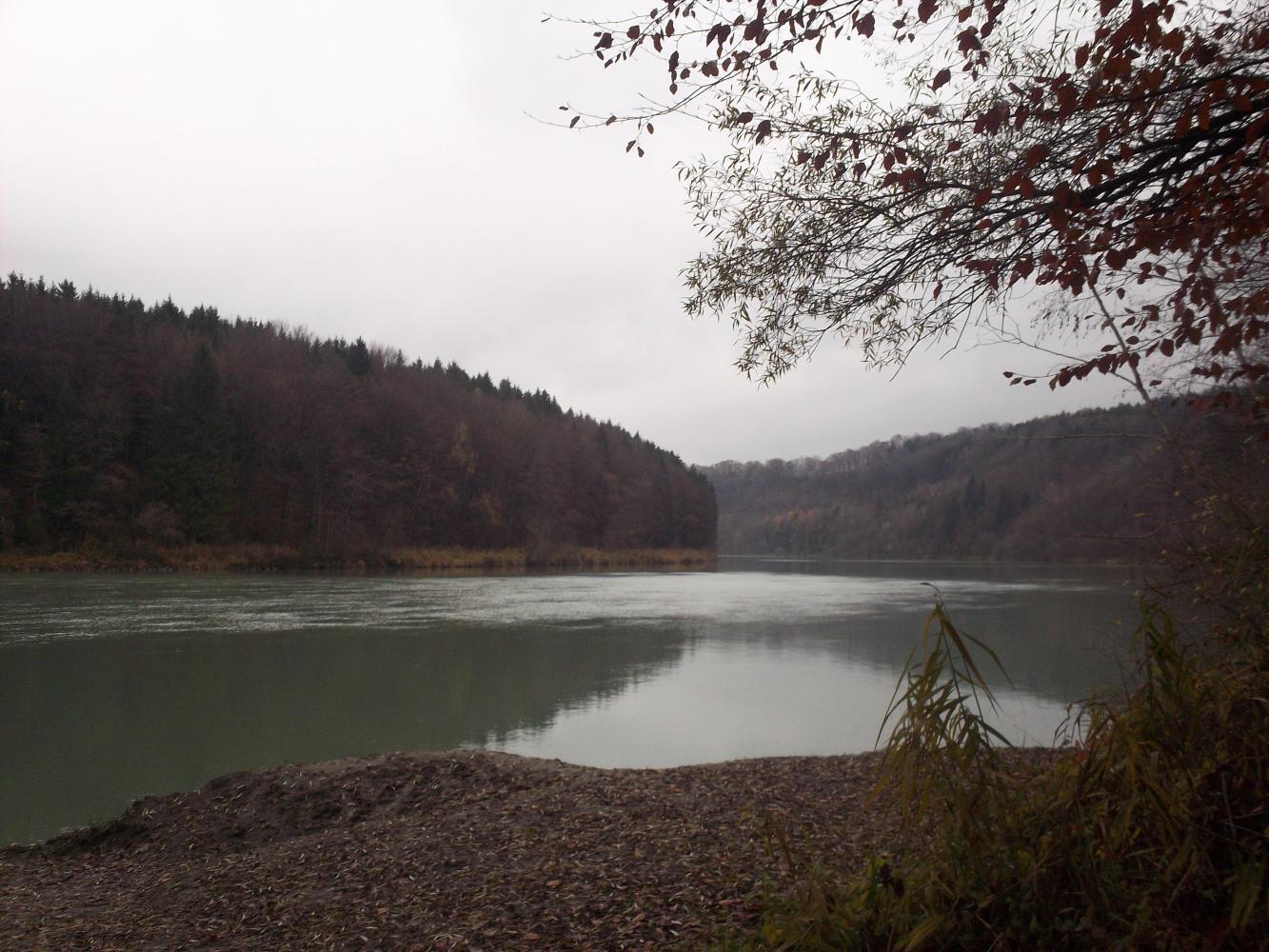 On the second morning, another grey one, I reached the Inn river at Wasserburg. I had hoped that following the river would mean it would be flat, but as it turned out the banks of the river were very hilly and steep and so the cycling was quite up and down and difficult. This had the consolation of being very scenic and after climbing up out of Wasserburg I had some very nice views back down over the town and the river.