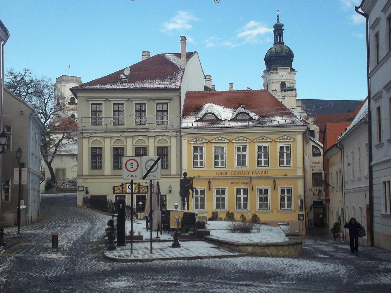 By the time I arrived at the town of Gyor everything was getting rather dicy. The trails cut in the snow by all the cyclists and the freezing temperature left ice on the bike path. The road was in a similar state and there were cars and bicycles skidding all over the shop. After almost coming a cropper myself I decided it might be a wise idea to invest in some studded winter tires and so I looked for a bicycle shop in Gyor. I found a really rather lovely town with several nice churches and cobbled streets and a Christmas market and old ladies in fur hats. But I did not find a bike shop. That wasn't so important though because by the time I'd done all that looking the sun had come out and melted all the ice and I figured that was probably the worst of winter over and done with so I didn't need the winter tires after all.