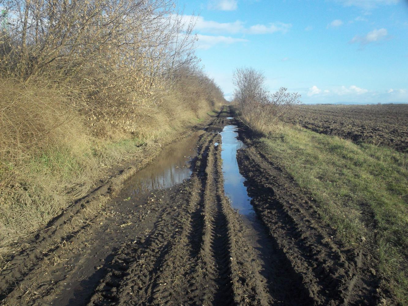 But my turn east took me off the asphalt road and into a field. 'What the hell is this?' I thought as I faced a muddy, sludgy trail pockmarked with icy puddles. Progress certainly wasn't going to get much faster now, tailwind or not. It was unbearably slow going as I kept getting stuck in the mud and having to get off and push when pedalling became impossible. At one point while walking both my feet slipped into a puddle and this was when I realised how awesome it was to have proper waterproof boots, as my feet actually stayed dry thanks to this pair that I had found at a flea market in Munich! But that was the only good thing, the muddy route was terribly frustrating. 'Well' I thought, 'at least it is an adventure!'