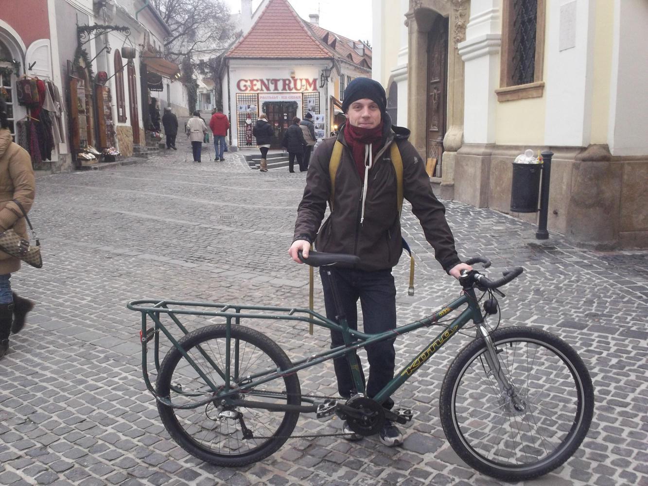 The longer route came with some advantages. I passed through the town of Erzewotsit, which was a very nice town with a big thing. And because I was still following the Eurovelo 6 bicycle route, I occasionally could get off the road and enjoy a bicycle path. It was on one of these paths that I came across a guy riding a rather odd looking bicycle. It looked odd because the rack was essentially built into the frame. This is something that really would have prevented a lot of my own rack based traumas. So I said hello to this guy and he said hello back and would you believe it he spoke English and I rode the rest of the way into Budapest chatting with Marcell, for that was his name. He told me about a bicycle trip he had done with this bike in Iceland and how he was planning another one from Barcelona to Slovenia in a couple of months time. He was a really nice guy and told me he was on his way to an event in Budapest, some sort of gathering of a human rights group, and invited me to join him. It sounded like fun, but I had told Ben that I would be at his family’s house sometime on Sunday afternoon, which was up a big hill to the west of Budapest, and it was already getting late.