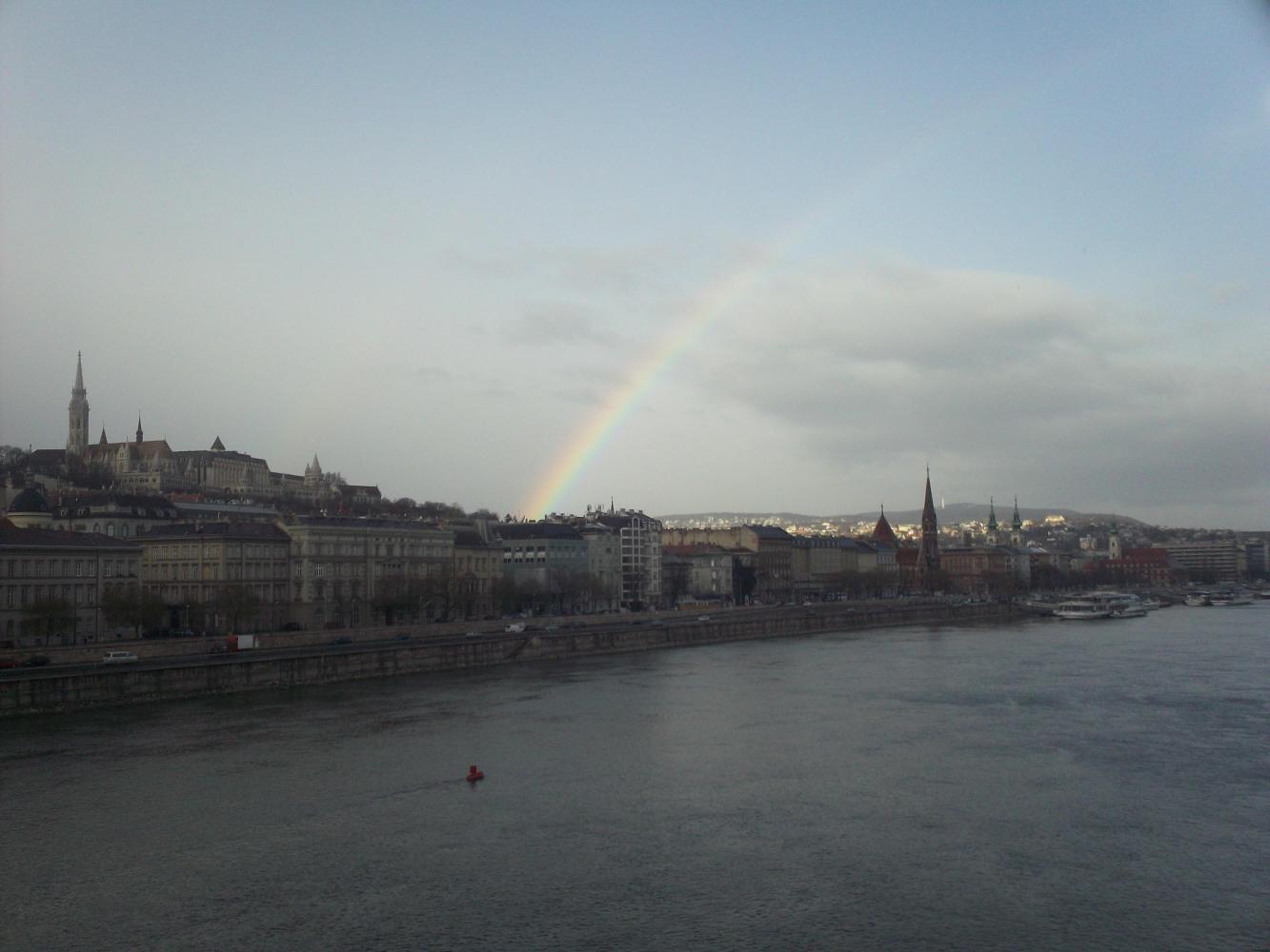 The next morning as I cycled once again into Budapest I was extremely frustrated because it was raining. Not just because it was raining, that I can handle, but that the skies were completely blue and clear and fine. This is absolutely the worst kind of rain. It is impossible rain. Deceitful, dirty, treacherous rain that has no right to exist simply because it defies all sense of logic and makes a complete mockery of the whole concept of clouds and rain and how everything is linked by the water cycle chart we all learn in school. Where exactly does this impossible rain fit on that diagram I ask you? If it does not come from clouds, where does it come from? Perhaps the reason for it is so utterly implausable that it is not included in the water cycle diagram so as not to confuse schoolchildren or anyone else. Or maybe nobody knows the reaon for this impossible rain. Well anyway, at least it meant rainbows.