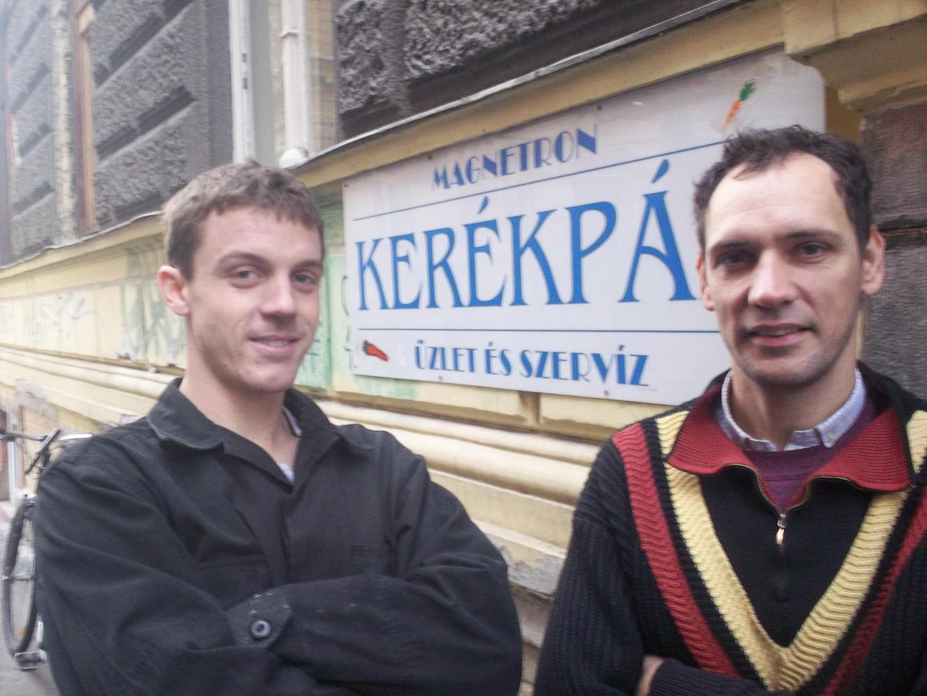 I cycled across for the first time to Pest, which is the east side of the river (Buda being the west) in order to meet Marcell outside his apartment. He cycled with me to the bike shop where he works. Because Marcell is one of the most awesome people in the whole entire world he wanted to have my bike looked over and, shall we say, made somewhat close to roadworthy again. I can only assume he decided this based on its appearance which at the time of our meeting was a little less than showroom standard. We arrived and met the owner of the shop there. He shook my hand and introduced himself as Ferry, so I introduced myself as Caress.