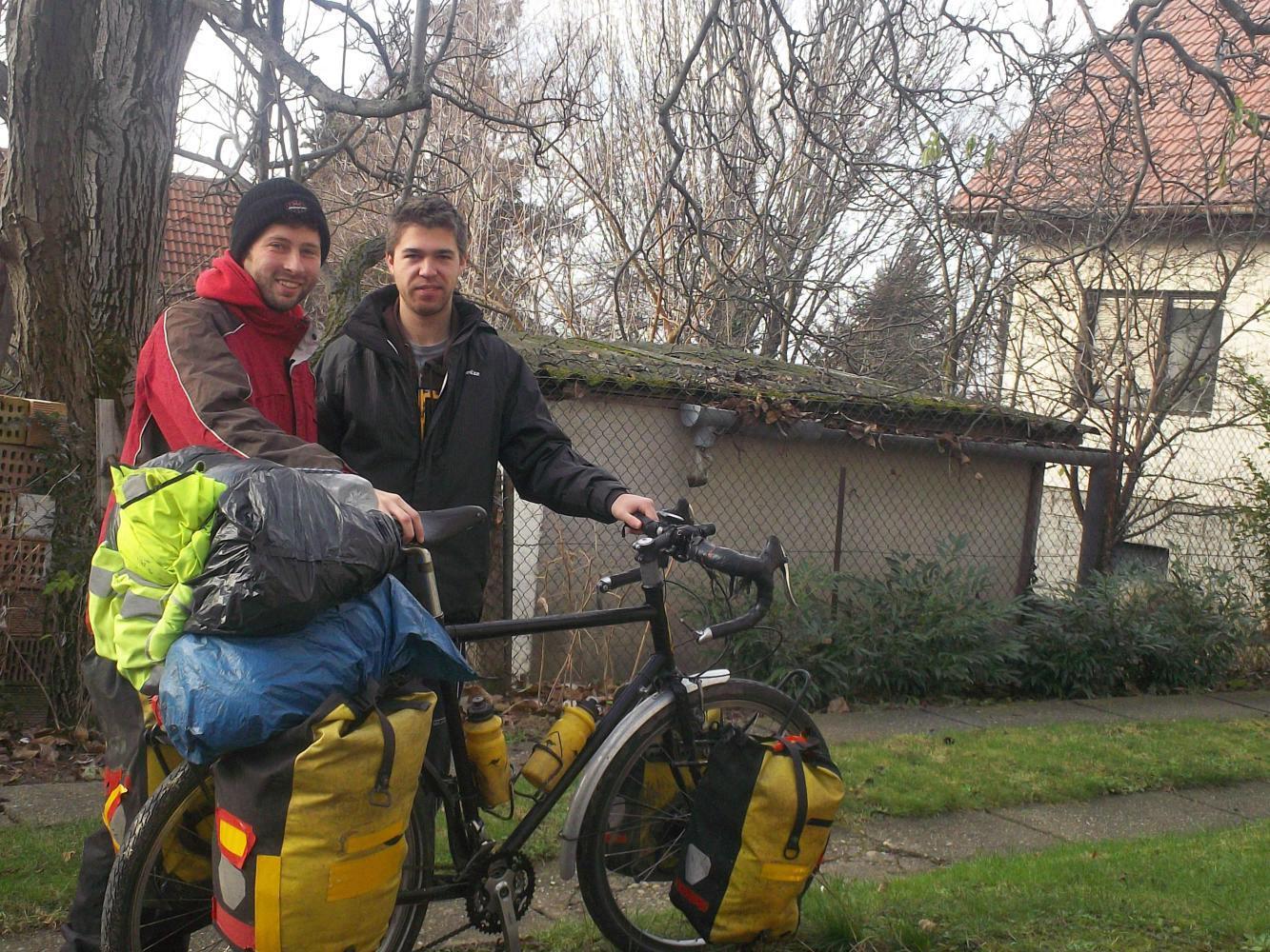 For the next few hours Feri and Marcell and, to a lesser extent, myself, worked tirelessly on the bike. It was still carrying around half a fields worth of mud from the extreme off-road section of Eurovelo 6 and so was given a thorough cleaning. My headset was regreased, chain replaced, rear gear cable changed, new mudguards were fitted (I lost the old ones about a year and a half ago) and my brooks saddle, now 60,000 kilometres old, was tightened up to give it a new lease of life. As I was cycling with Marcell the day before, one of my panniers had fallen off, which is a common enough occurrence and was quickly remedied with cable ties. But now I was offered some new clips for the bags which would hopefully alleviate such hassles. My front derailleur was also fixed and realigned properly. For I don't know how long I had only been able to use it on the small and the middle chainring and to move it from the middle to the small ring I had to give it a good kick with the inside of my heel (not always easy to do while going up steep hills.) Now I had three gears to choose from and it shifted easily. By the end it was really like a new bike. One which actually worked as it should! It was a miracle, an absolute miracle, performed by these two angels of men: