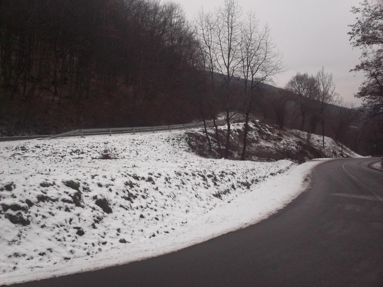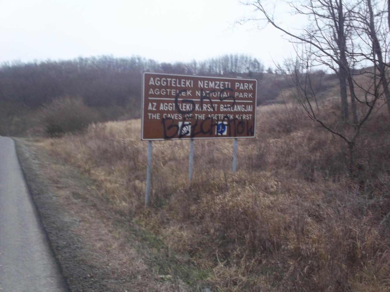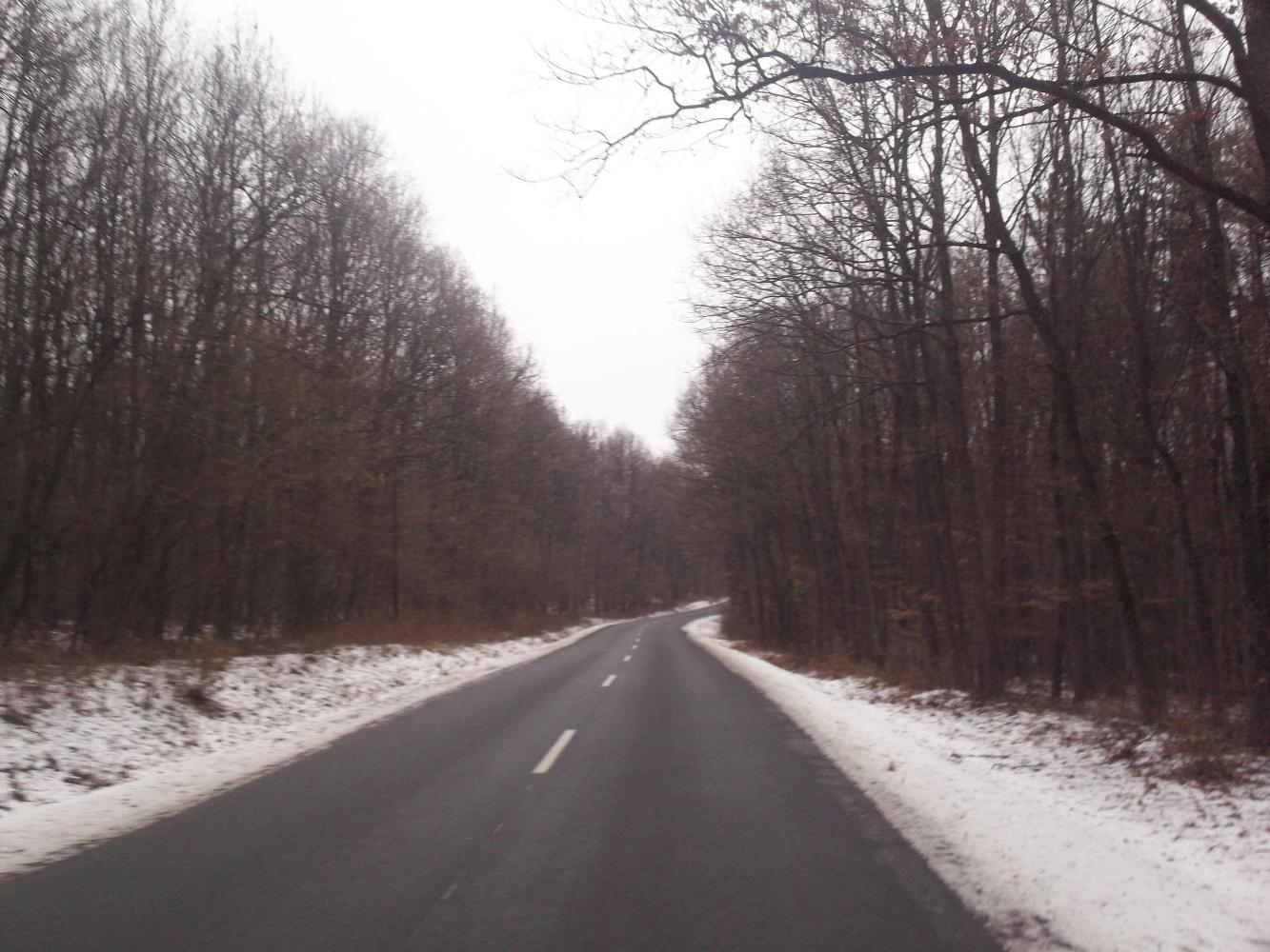 The road climbed through beautiful scenery and into the Aggteleki National Park. The mountains were not really all that high actually, they were almost more like hills. It is always an interesting question as to exactly at what point a hill becomes a mountain, and these were in my opinion, right on the cusp. I decided I should call them hilltains. Even so, there was snow at the side of the road through the forested hilltains, but the road itself was clear and safe. There is a large cave complex running through the hilltains, but unfortunately they were all closed to the public given the season and so I didn't get to see any of it. But I was happy with the scenery and I knew that I had certainly made the right choice as I descended safely into a valley before nightfall.