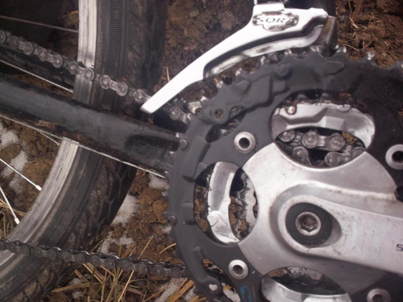 I couldn't pull it out and this was a problem that up until a year ago I would have struggled to fix, but these days I carry a crank removal tool and know how to use it, so I was able to free the chain by basically removing the whole chainset and disassembling it. It was a tedious task in the cold, but it was accomplished and I was able to continue.