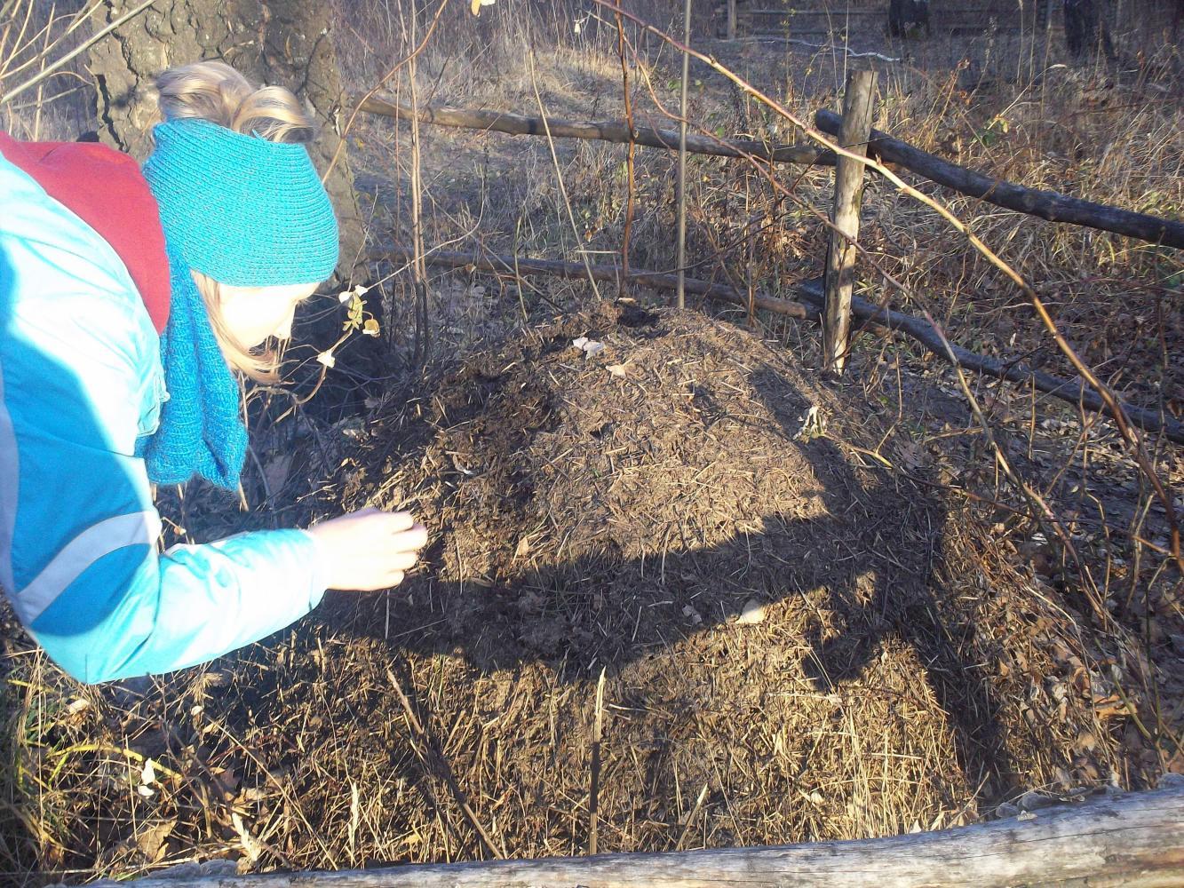 We decided to try and ignore Harvey for a bit and on the far side of the woods we came to a big ant hill. Because Hanna and I are both way cool and live wild and exciting lives we had recently watched a documentary about ants, and were therefore intrigued to look closer. But there were almost no ants on the hill, just three or four that were moving very slowly as if half asleep.