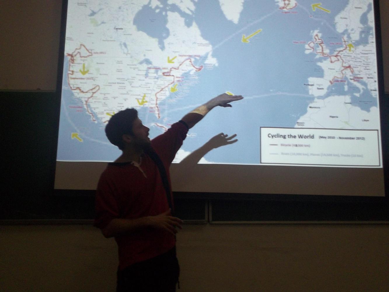 'Something must have been lost in translation there' I thought as the room filled up with more and more people. There must have been more like thirty by the time I began my presentation, although that quickly dwindled. I assume hope pray that these early exits were a result of an inability to understand the language that I was speaking in, not because of an inability to be entertained by my engaging, humerous and often heart-warming tales of a life on the bike. In any case, I actually rather enjoyed myself and was fortunate enough to receive a big round of applause, a shake of the hand from the Dean of the Faculty, and an overwhelming "you have changed many lives tonight!" from Andriy. Steady on there my friend, I'm not sure about that.