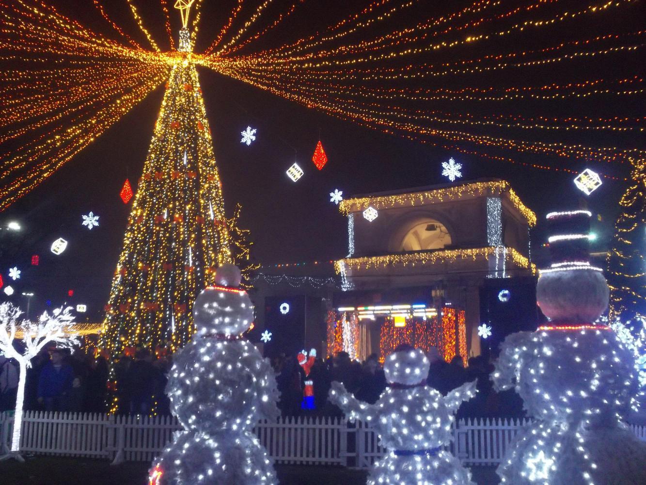 I decided to make the best of the unusual turn of events and go out and see Chisinau at night. I had actually regretted not doing this the last time, when I just stayed in the hostel all evening, and was glad that fate had given me another chance. And Chisinau did not disappoint for in the centre, near to the cathedral, was a most wonderful Christmas scene. There was a Christmas market and a big tree and a stage and ice sculptures of lots of different animals and trees and snowmen and all of it was lit up with a generous amount of lights. This lighting effect was really beautiful and this Christmas night there were lots of people out enjoying themselves. For my part I was very glad to be enjoying the wonderful, happy atmosphere in this safe and existing country.