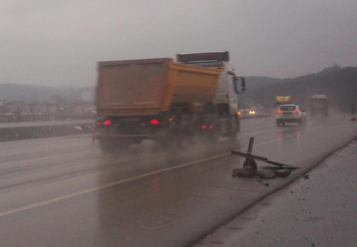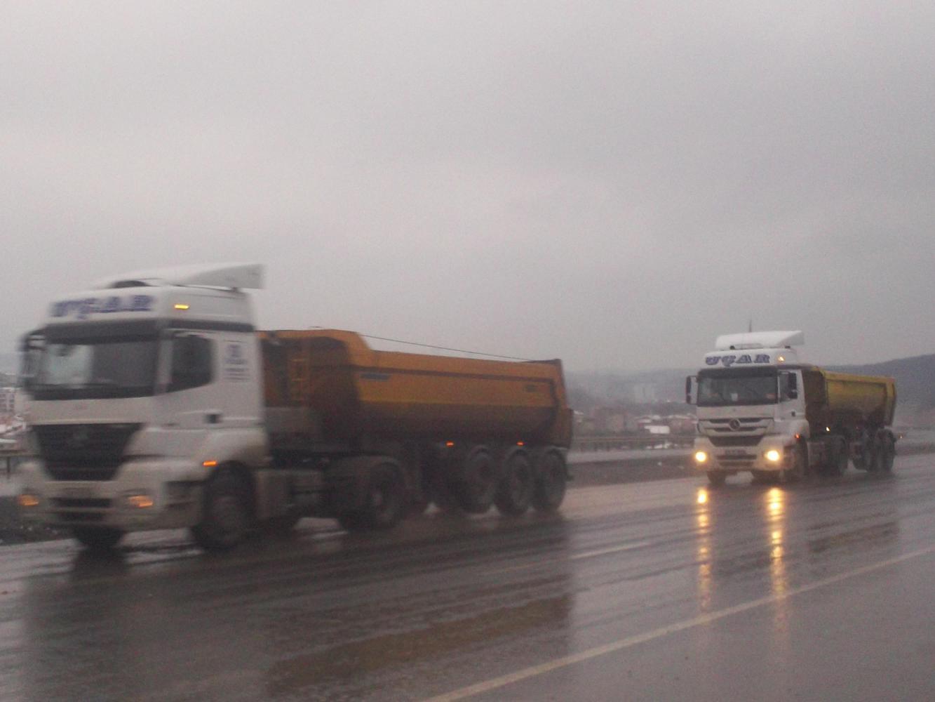 But do you believe this was the end of my trials? If only that were the case! If only I could tell you at this point that the sun came out and the road was all downhill from here and my bike somehow fixed itself! But no, none of that happened. What actually happened was that I passed some sort of quarry and the road suddenly became insanely busy with yellow dumper trucks. I later found out that these were carrying materials for the construction of a new airport and a new bridge over the Bosphorus and new roads of all kinds for the ever expanding Istanbul. What they were doing wasn't nearly so relevant to me at the time as what they were spraying. What they were spraying was a fine mist of water and mud and filth from their back tires which went all over me, even cycling as I was in the shoulder. One after the other after the other they kept lumbering past. Every single time my mirror became coated in filth and I would try and clean it, only to see the next truck coming up, ready to dump a load more filth on me.