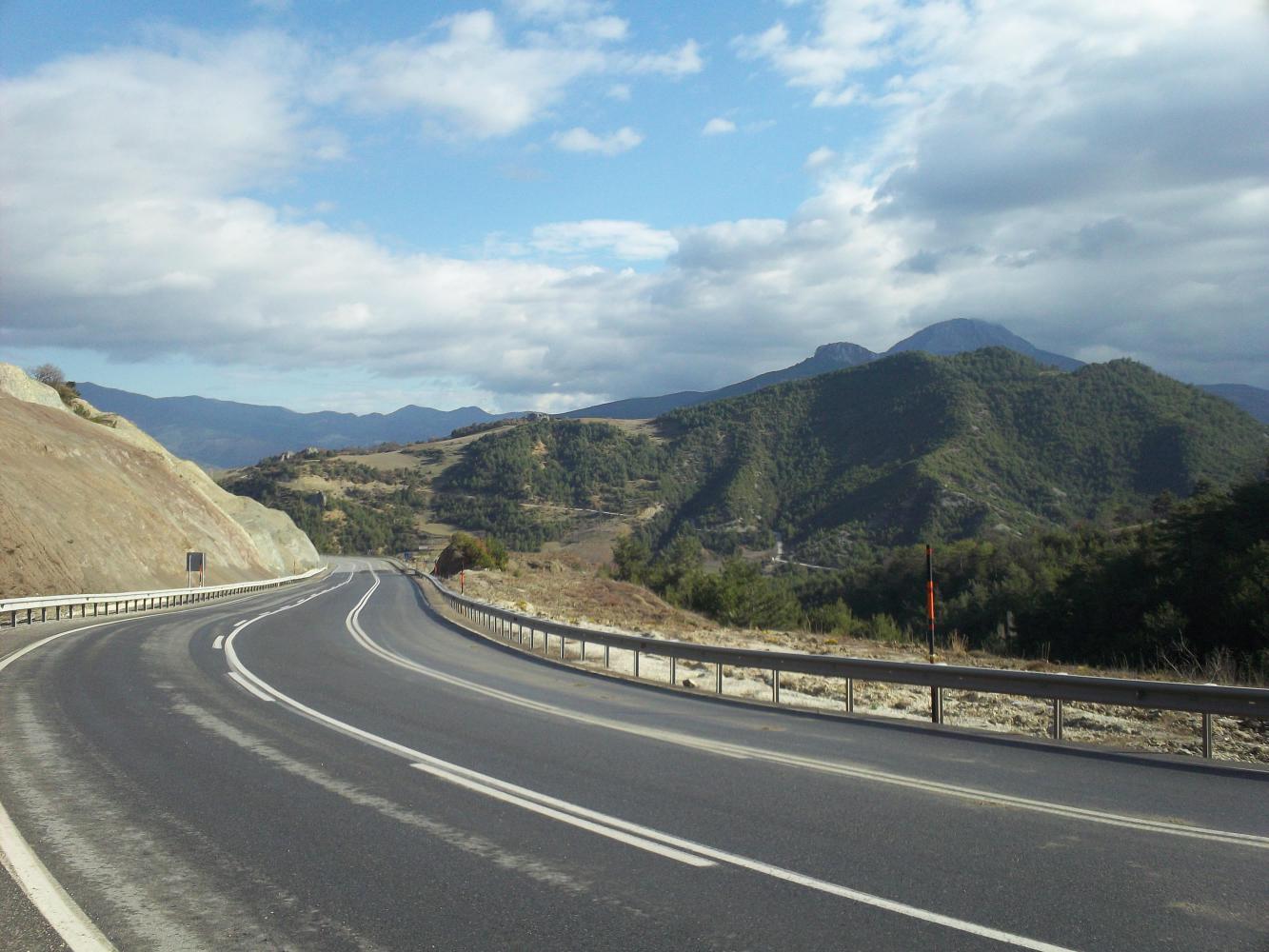 I was really only still at the bottom of the climb where I camped, for in the morning I climbed steeply up for another ten or twelve kilometres. This took me right up into the mountains and I could say that the scenery was really truly spectacular for the first time since the Alps. It was also a warm day with periods of sunshine and the green pine forests, blue skies and stunning mountain scenery had my spirits soaring.