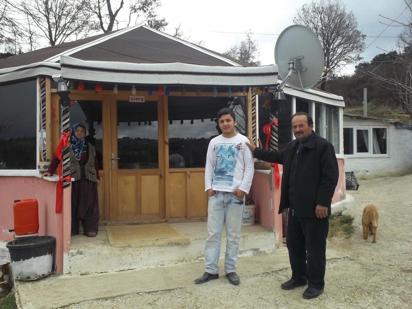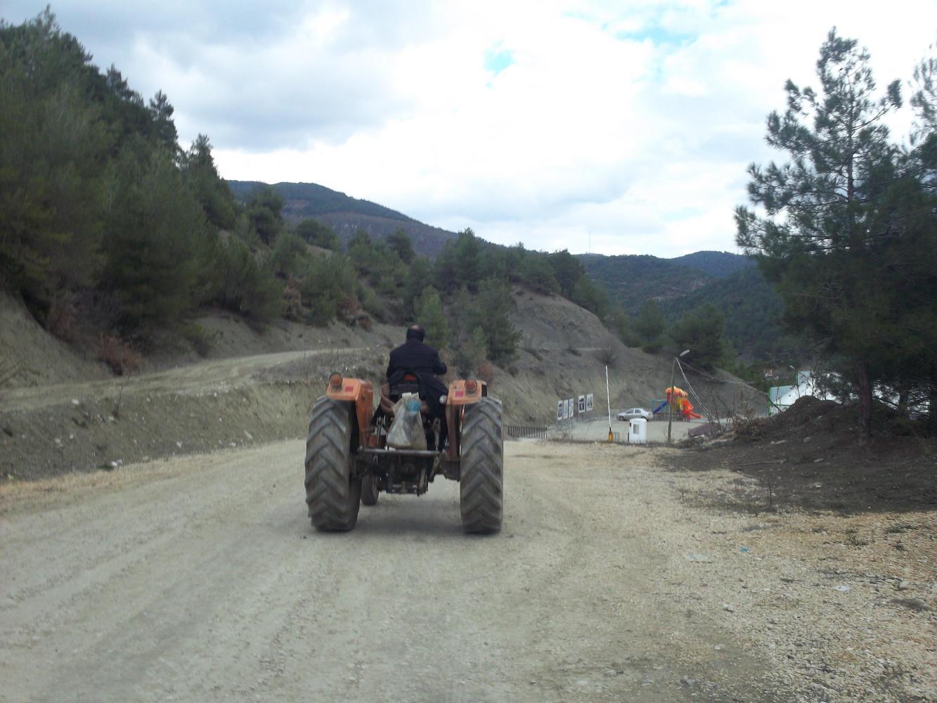 Just over the top of the pass I stopped to take a break at a spring that was near to a building of some sort. I had just finished my first chocolate spread sandwich and was trying to ignore the two dogs that were barking at me when a man pulled up on a tractor outside the building. He came over to me and shook my hand and encouraged me to come with him to the building. It was a circular stone hut-like building and once inside I saw that it was some kind of a cafe/tea-house. The man who had invited me to it was balding and had a black moustache and kind brown eyes. He appeared to be the owner of the cafe and introduced me to his son who brought us tea which we sat and drank in front of the TV which was showing Turkish music videos with surprisingly scantily-clad women. I was able to establish that the man's name was Mehmet but not a whole lot else for although he spoke to me almost continuously it was in a language that I could not understand. Mehmet was also not very good at sign language and I got nothing of what he meant other than when he pointed at the women on the TV and rubbed his fingers together to imitate sexual intercourse. Mehmet's wife, by the way, was outside hard at work sweeping the driveway.