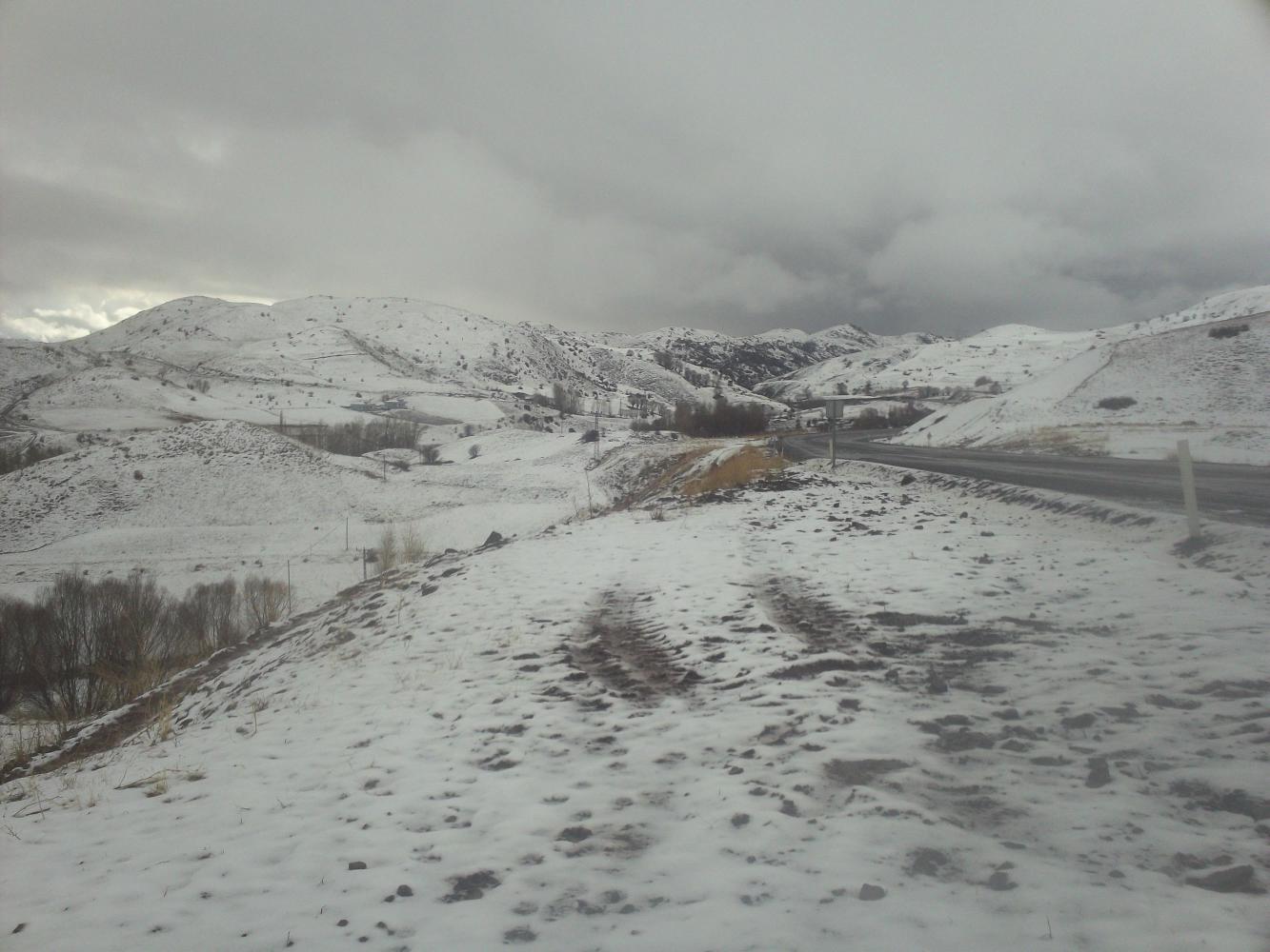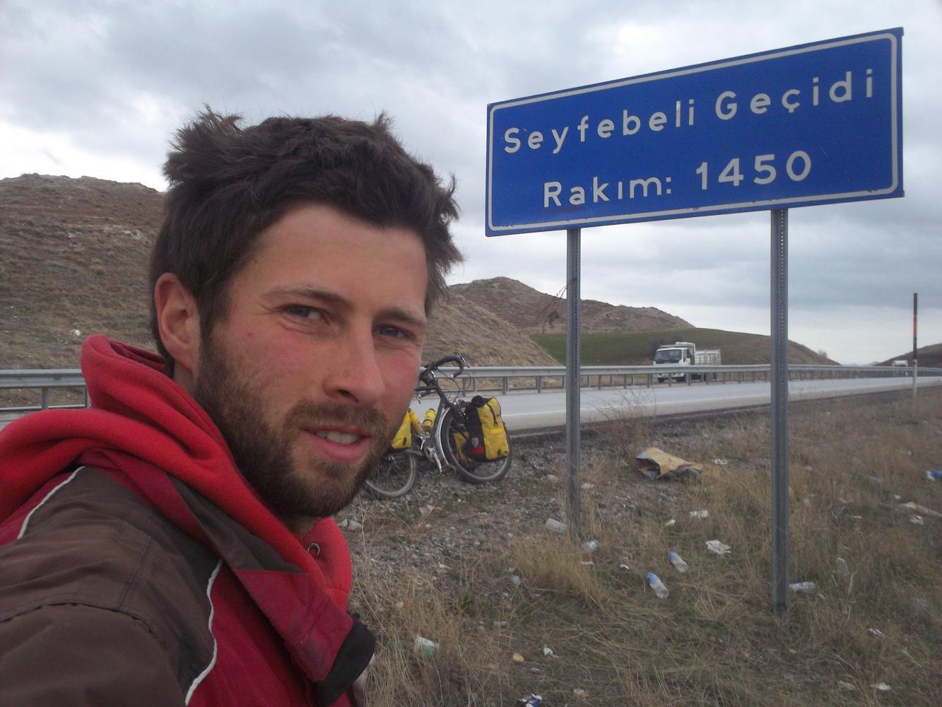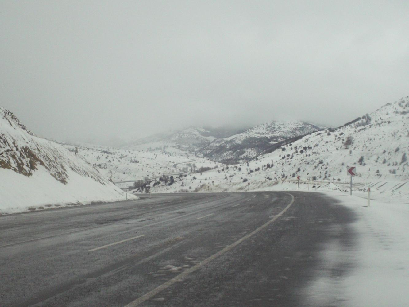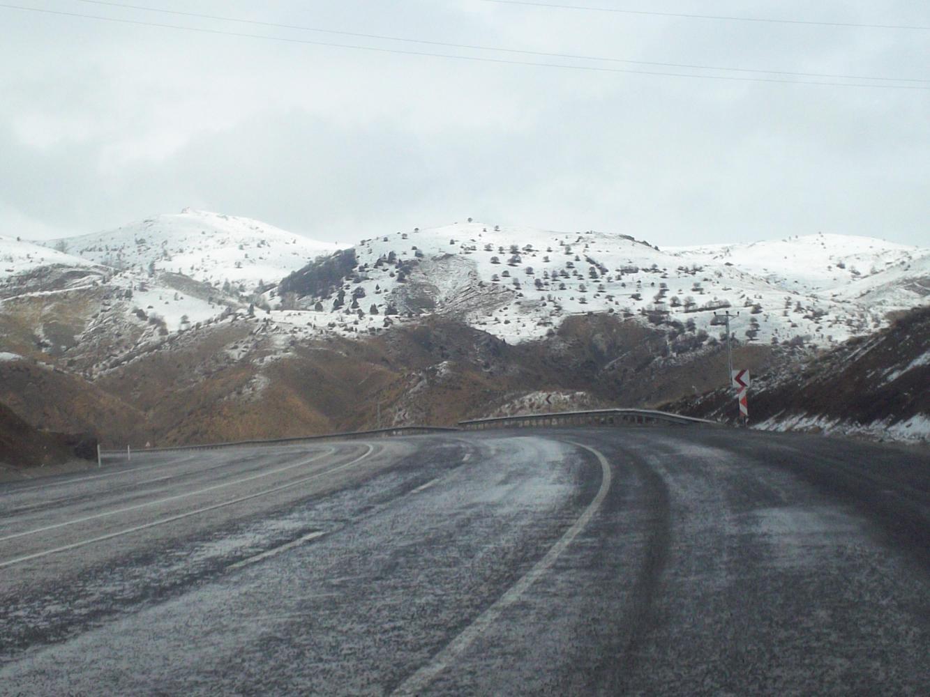 After Avanos I followed a main road east for several somewhat unextraordinary days. On the first night I did have a most wonderful camping place, on a hillside with big rocks around me and a view down over the city of Kayseri and directly in front of me was the massive snow-covered volcano that I had seen from Cappadocia a few days earlier. Now being much closer the view of this titanic volcano would have been really quite incredible had it not been almost entirely hidden from view by heavy cloud cover.