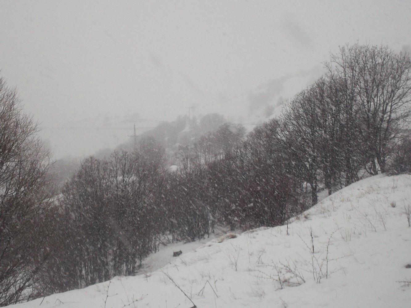 Unfortunately for me the snow soon turned to heavy rain, which was much worse. By the time I arrived in the town of Zara, at the bottom of the climb, I was completely soaked. I found an Internet cafe and sat in there for a while, the owner being a wonderful kind man who let me put my jacket and gloves on the top of the woodstove to dry. The only downside of this was that my jacket did melt a little bit and possibly almost caught fire, and I rather foolishly put my hand on top of the stove to see how hot it was, burning three of my fingers in the process.