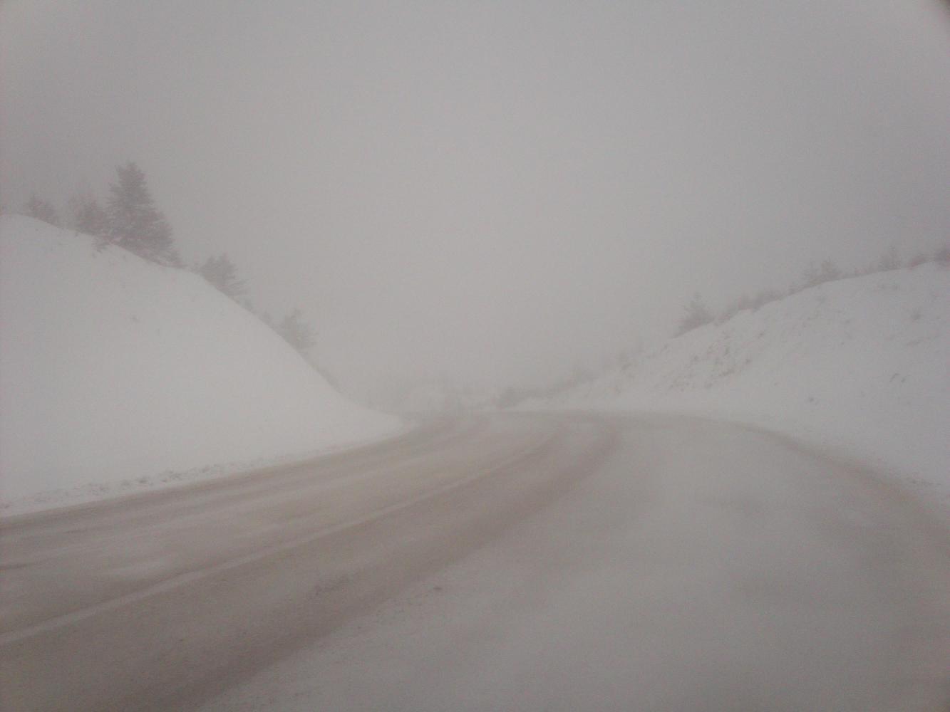 As I walked outside to begin on this descent the snow was still falling and there was a sudden loud roll of thunder above my head. This mountain was really pissed. I figured the thing to do was get down as quickly as possible, something that was initially made much more difficult by the snow which was now covering the road. The irony that the men that should have been out ploughing the road had not done so because they were too busy enjoying a tea with me was one that was not lost on me. Because of the road conditions I had to brake a lot and realised that the three fingers that I used for braking, by an extraordinary coincidence also happened to be the exact same three fingers that I had burnt, making the whole thing even more painful.