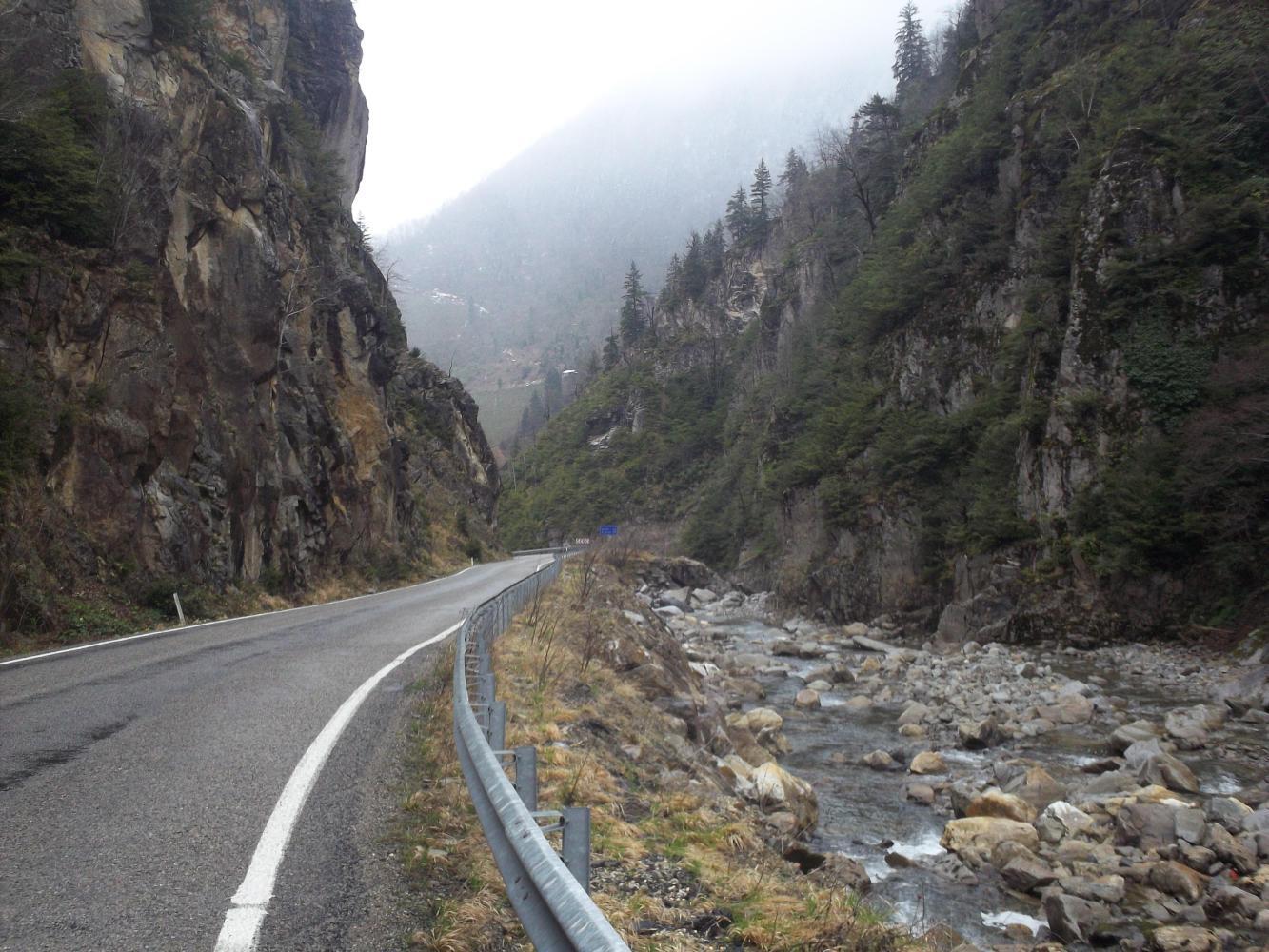 After 35 kilometres I was finally down below the snow and started to travel alongside a river through natural spruce forest. It was the first time that I had seen such an environment in Turkey. But after the town of Dereli, a busy place where I returned to civilisation drinking tea with a man named Mehmet, the road became very busy. It was still a narrow road with no shoulder and was in very bad condition in places but was packed with cars and quarry trucks, making it significantly more dangerous than anything I'd faced higher on the pass. Where was my tank now, huh?