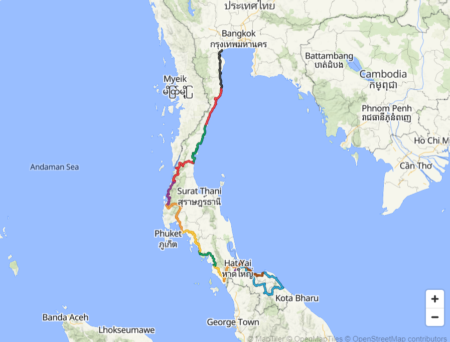 I decided to start the furthest south I could fly and then make my way back to Bangkok where I'll fly home. I mapped the route using AI, as well as google searches to figure out the best places to tour by bike. Generally I'm following well defined bike routes that most touring company would use. I'll enjoy sections of both coasts, as well as some of the interior regions as I'll cross over twice.