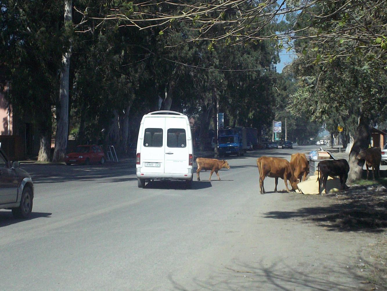 The road back to town seemed even more crazy and dangerous than it had on the way out. It wasn't just the speed that people drove at, it was the insane overtaking and the lack of road markings or seemingly any rules at all. As a bicycle I was naturally required to give way to anything with an engine, something I was happy to do. It was as I was doing this that I saw on a side road a sad scene of a cow lying in the road in front of a stopped car, surrounded by a large group of men. A passer-by confirmed to me that the cow had been hit by the car. 'I can't have been the only one who saw this coming, surely?' I thought. It was very sad, but the car wasn't badly damaged and the cow didn't seem to be too hurt, so I hoped that with a bit of luck the poor creature might live long enough to make it to the slaughterhouse.