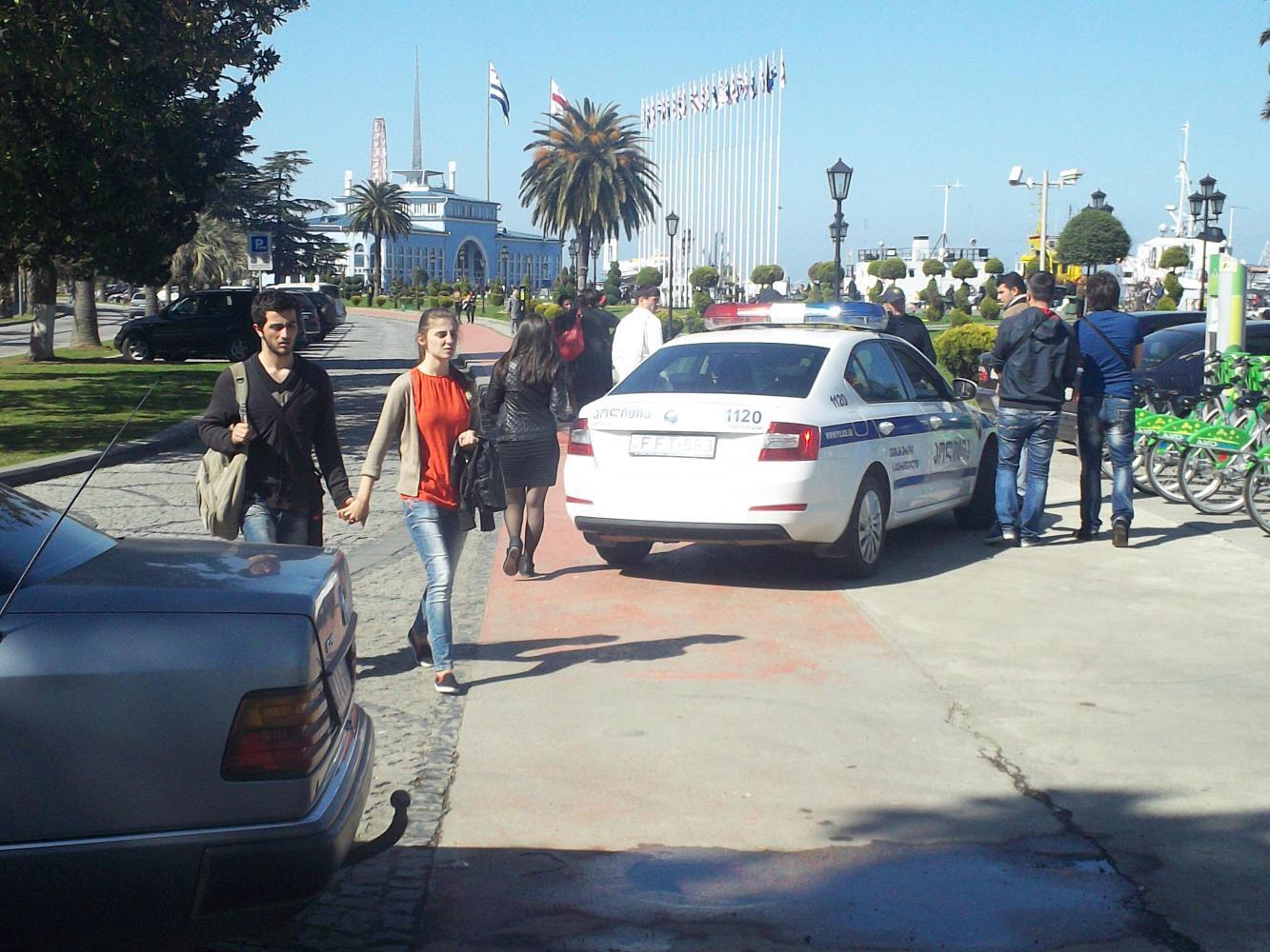 I had something that looked a bit like an Azerbaijan visa and I was finally ready to leave the insane Batumi and I was able to follow the bike path for a few more kilometres out of town. By the way the bike lanes that run through Batumi are great as they are bright red and similar in design to in German cities. The only problem that I found was that absolutely nobody paid the slightest bit of attention to them and most pedestrians actually seemed to prefer to walk in them than on the pavement. Definitely the least respected bike paths I'd ever seen. This picture was fairly typical and reminded me of the funny Casey Neistat video that follows: