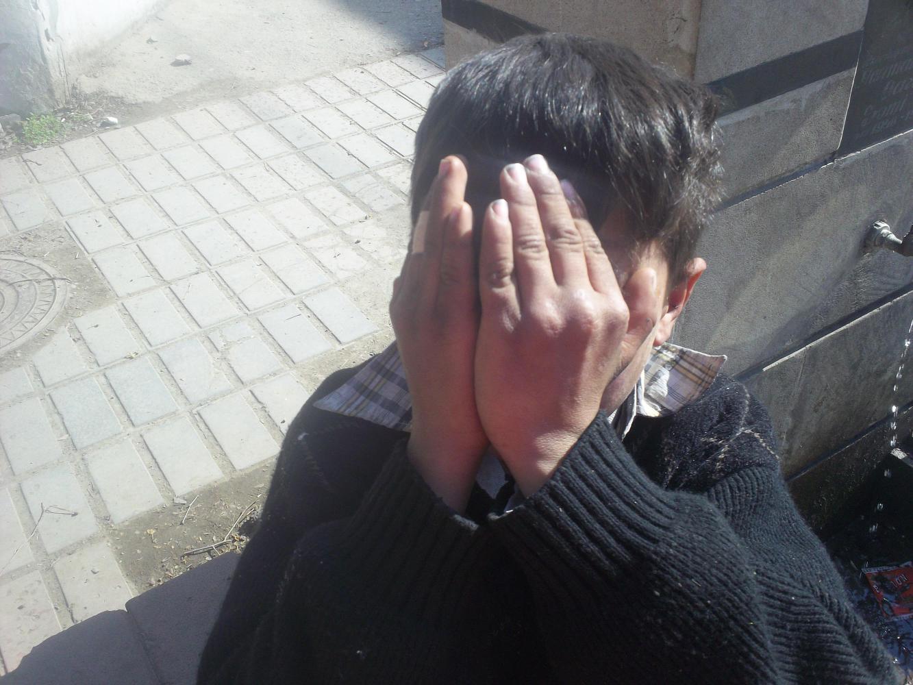 The old man departed and as I was going through the long process of refilling the bottle again my young street urchin companion from the bench came running up to my once more. He jumped on my bike and I tried to take a picture of him on it, but as you can see he wasn't too keen on having his picture taken.