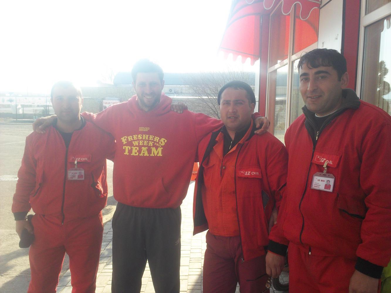 The warmth and kindness of the people continued throughout the day and later on I was stopped at another gas station and welcomed in for tea. I particularly enjoyed it here because the workers who greeted me were all wearing bright red overalls - finally I had found somewhere that I fitted in! I was astonished by the number of cars coming into the station that were Ladas. It really was more than half the cars on the road. It seemed a little strange that the most 'un-Russian' of the former Soviet states had the most Ladas. I guess the countries oil wealth has not seeped down to the common man. Actually I even saw police cars that were Ladas, so I guess the countries oil wealth hasn't even seeped down to state services. To be honest I don't think the countries oil wealth seeps much further than the dictator president's pockets.