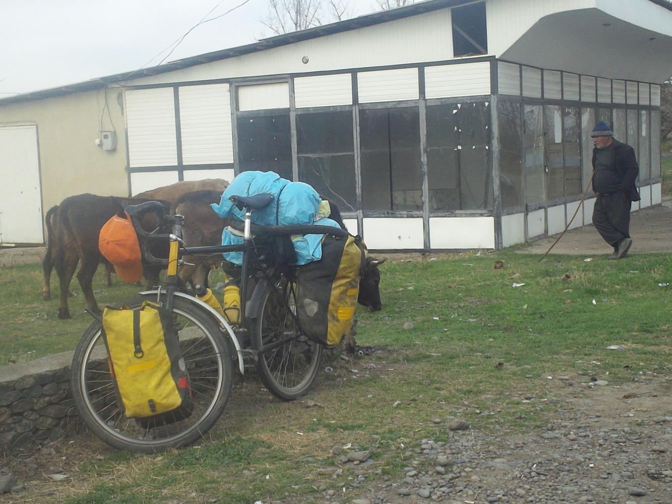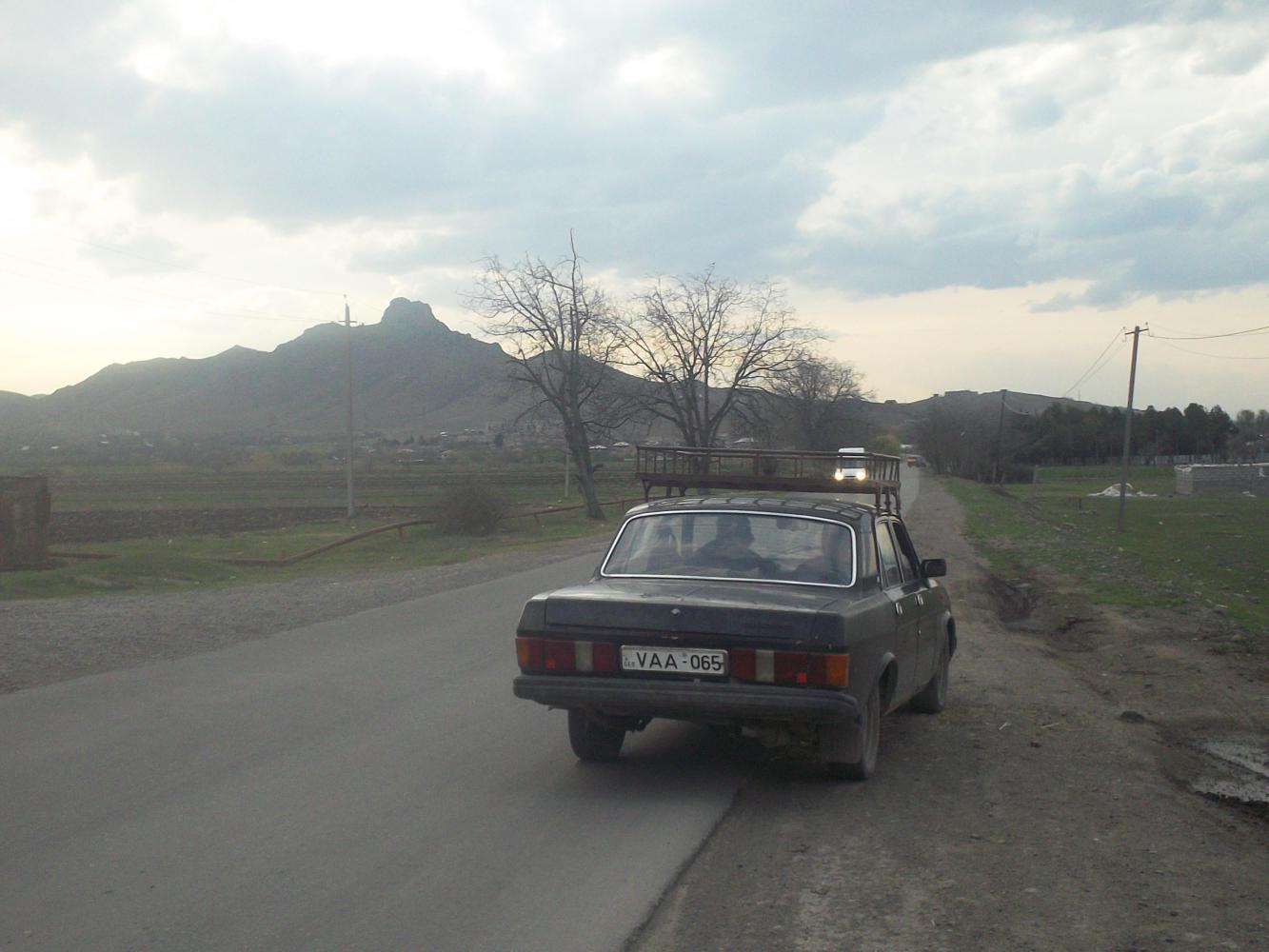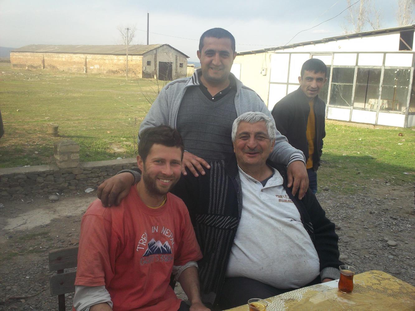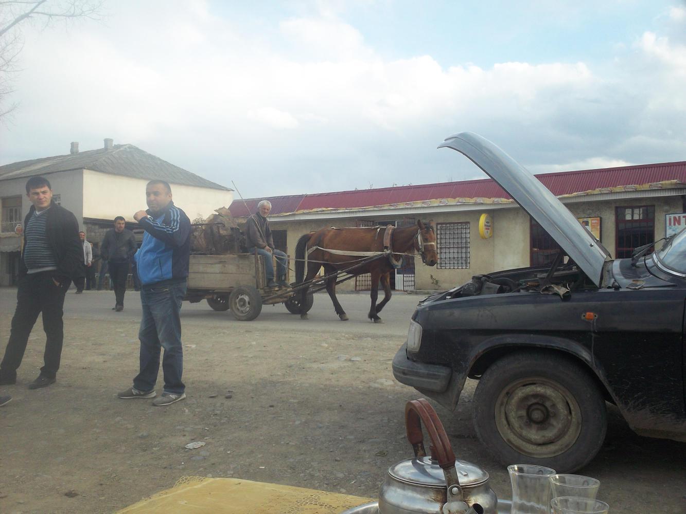 At about six in the evening I was called over by a large group of men and offered more tea which I gladly accepted. It was wonderful to sit there and talk with these men and think about how far I had come since Paris. Behind me a man stood and tended his cows next to my bike, around me were crowds of gold-toothed Azeri men peering at me curiously, and in front an old broken car sat with its bonnet open as a horse and cart made its way along the road next to it. It was magic. When the kindly man sitting next to me offered to let me sleep in his house I saw no reason to do anything other than gratefully accept.