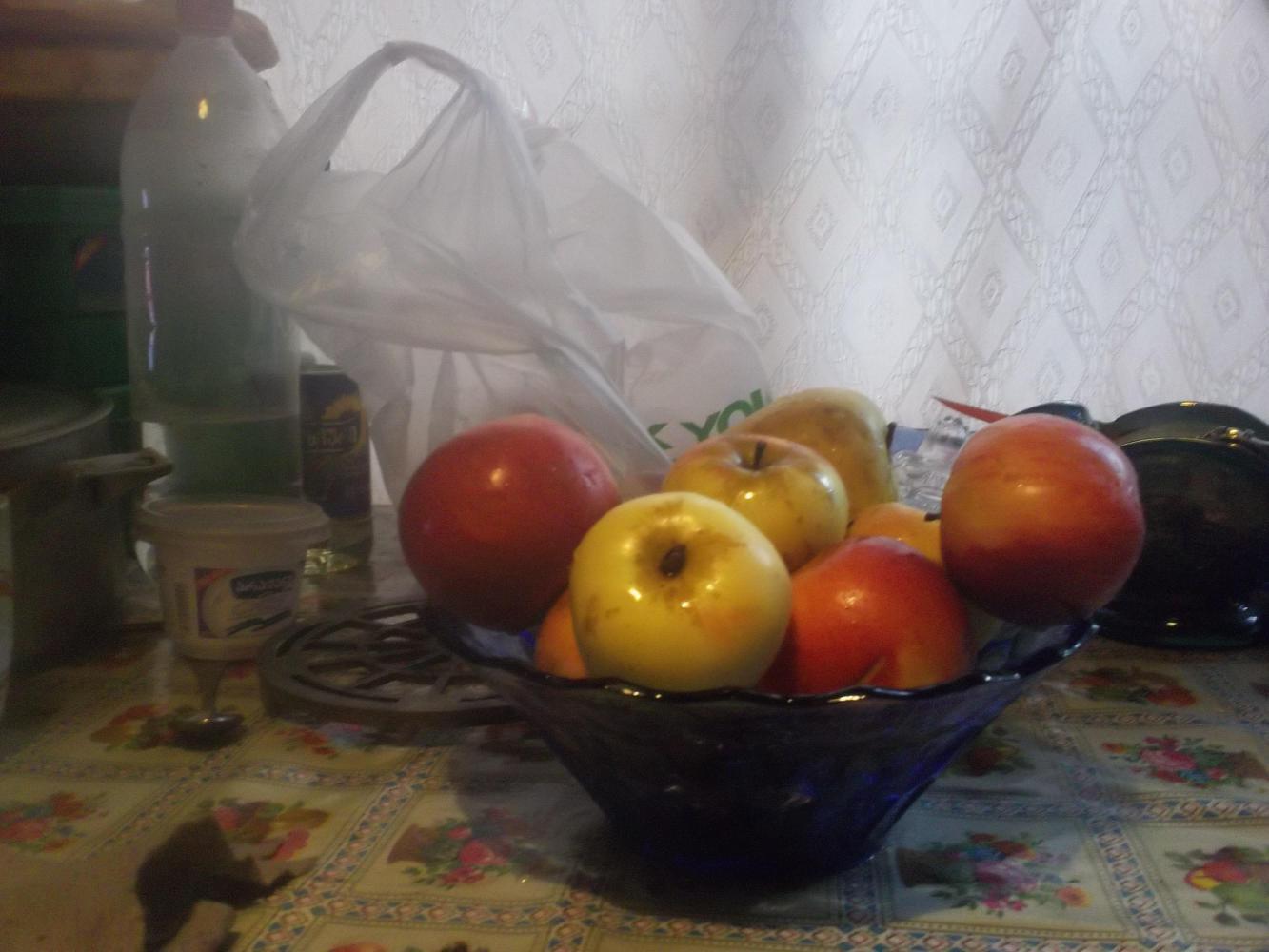 I sat and watched some television which was a mixture of Turkish and Russian channels mostly. It was of course very difficult to understand but it was alright because women's volleyball was on. Then after about half an hour the old car spluttered its way back up into the driveway and Ramis walked into the house. He was of course carrying in his hands a massive bag of apples.