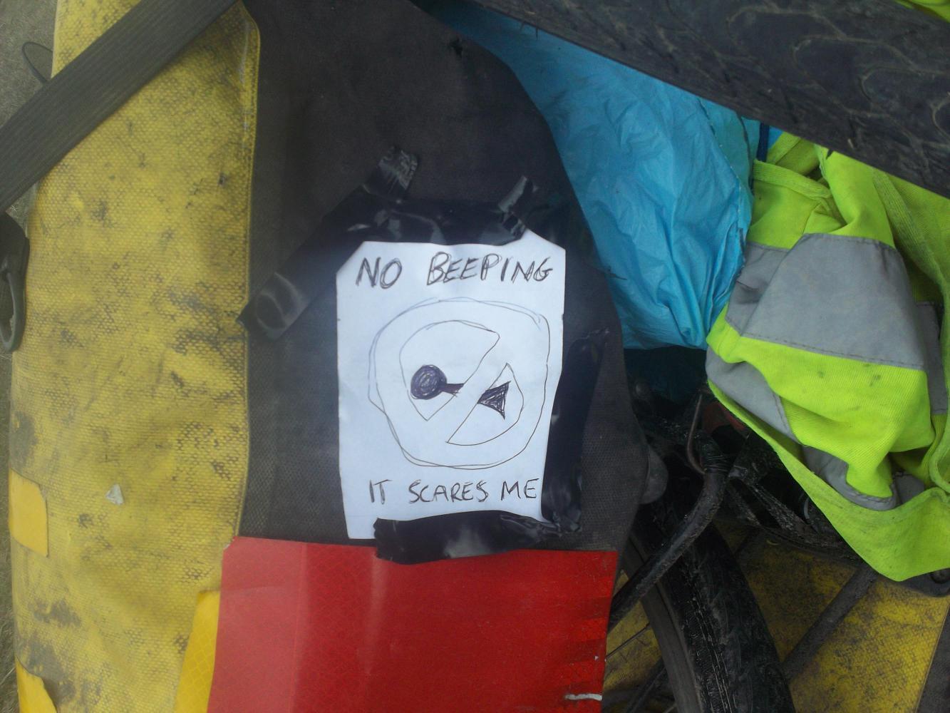 What made things much worse during my entire time in the country was the infuriating horn beeping of passing cars. I had got plenty used to being beeped at throughout Turkey and Georgia, but the Armenians had taken things to a whole new level by beeping as loud as they could at just exactly the moment that they passed me. Quite what they hoped to achieve by this remained a mystery to me, I certainly tried to remain optimistic that their main objective was one of inspirational support. On this account they failed, instead inducing in me a state of sudden terror that made me jump out of my bicycle seat. Finally I got so fed up of this that I made a sign and stuck it to the back of my bike. Unfortunately it was too small and consequently was a complete failure. I resolved to make a bigger sign if I could ever find the necessary stationary.