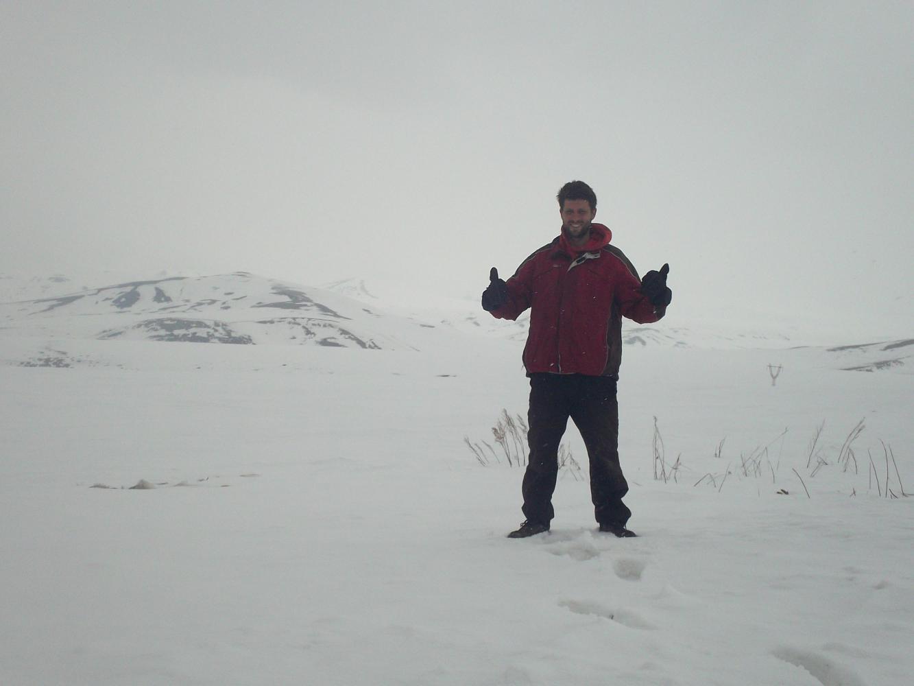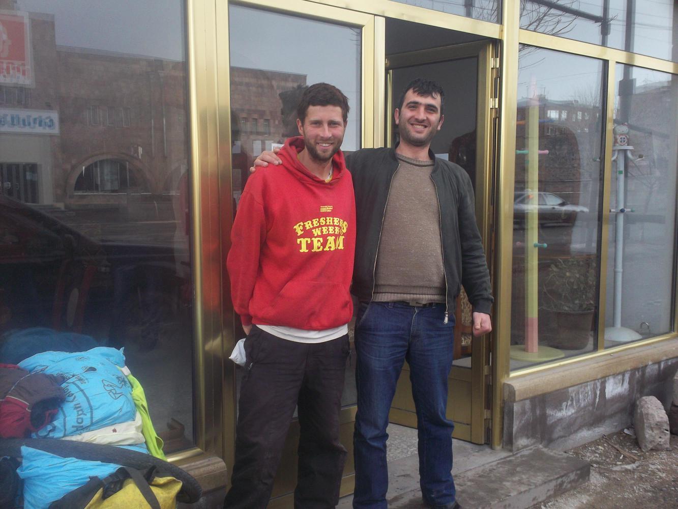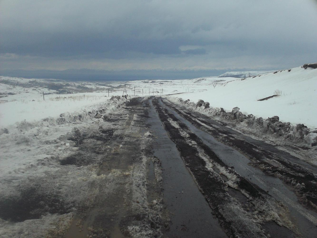 Beyond Martuni I had to cycle over another mountain pass, which was to become very much the theme of the trip through Armenia. There was a lot of snow and the road was in bad shape with large sections encrusted in ice. A lot of the cars that were navigating their way through stopped to ask me what I was doing or to offer me a lift, in the friendly way that I was beginning to associate with the Armenians. I was also warmly greeted by a group of Dutch* tourists that were travelling through the country in a convoy of rented jeeps. I found them to be extremely kind and friendly people.
