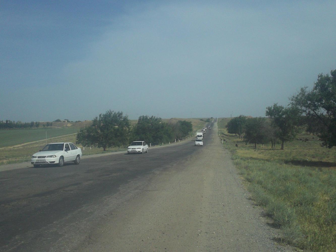 After I said my thank-yous and continued I was still very tired and I was still going into a headwind and there were still too many people. I was constantly being whistled at and shouted at. "Atkuda? Atkuda? Atkuda?" came the cries. "Anglia! Anglia! Anglia!" came my ever more frustrated response. Now, please don't get me wrong, it wasn't that I didn't want to meet anyone in Uzbekistan, it was just that I didn't want to meet everyone in Uzbekistan. And as if the people weren't enough, there was the traffic. I honestly didn't believe the horn beeping could get worse but Uzbekistan had taken it to a whole new level. Even worse still were the cars that slowed down only so that the occupants could stare slack-jawed out of the windows at the stressed-out tourist. Thoughts of quitting the whole trip, of getting on a plane and leaving this all behind, entered my head for the first time. It was too hot, it was too difficult, I was too tired, the beeping, the constant beeping, I was seriously getting a stress-head on. "Atkuda? Atkuda? Atkuda?" "Shut-up! Shut-up! SHUT-UP!"